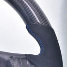 Custom BMW 1 / 3 / X / Z Series Flat-Bottom Carbon Fiber and Alcantara Sport Steering Wheel Preset 012 | Blue Stripe, Blue Stitching, Twill Carbon | E81 E82 E87 E88 E90 E91 E92 E93 M3