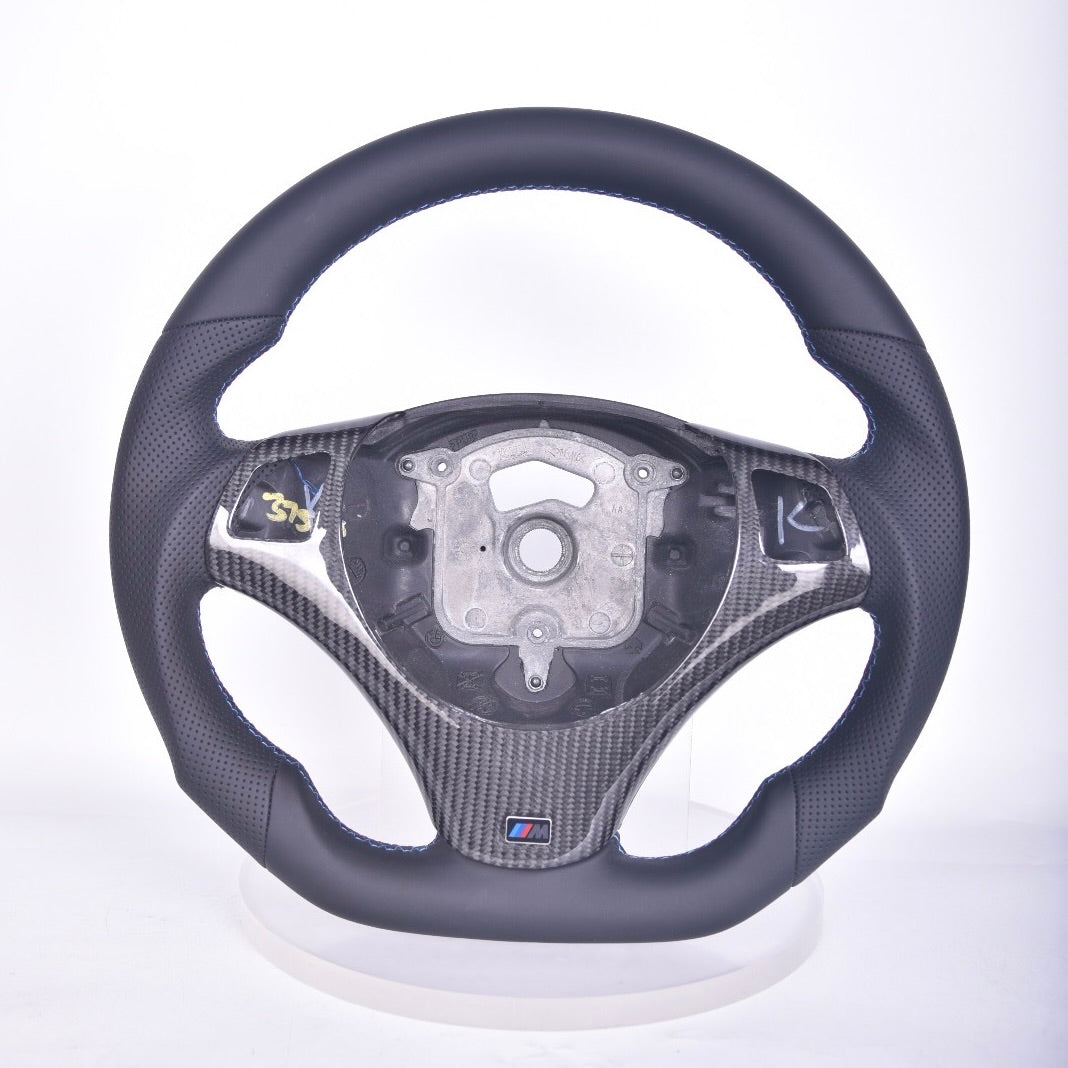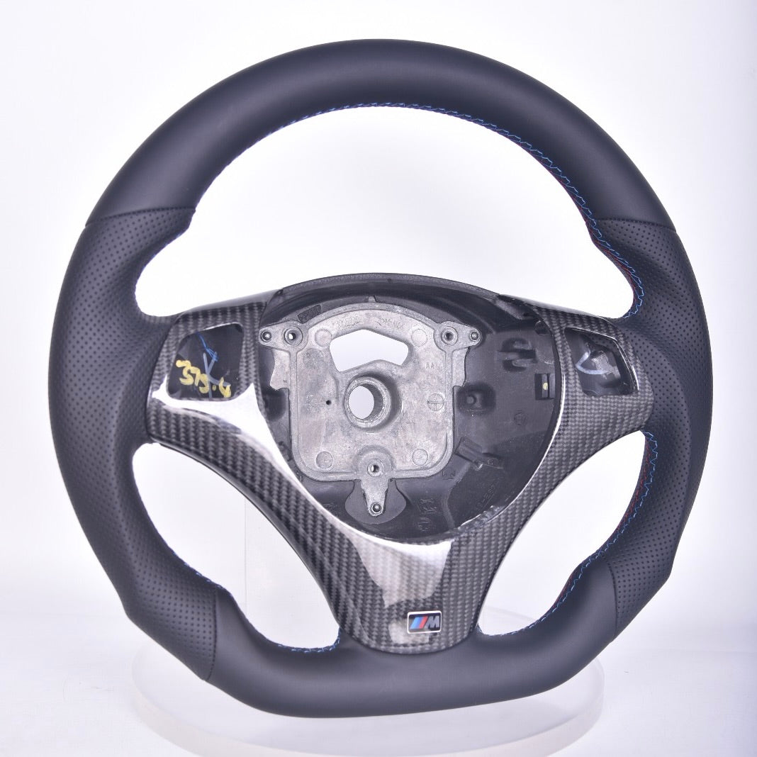 Custom BMW 1 / 3 / X / Z Series Flat-Bottom Full Leather Steering Wheel Preset 005 | M-Sport Stitching Stitching, No Stripe | E81 E82 E87 E88 E90 E91 E92 E93 M3
