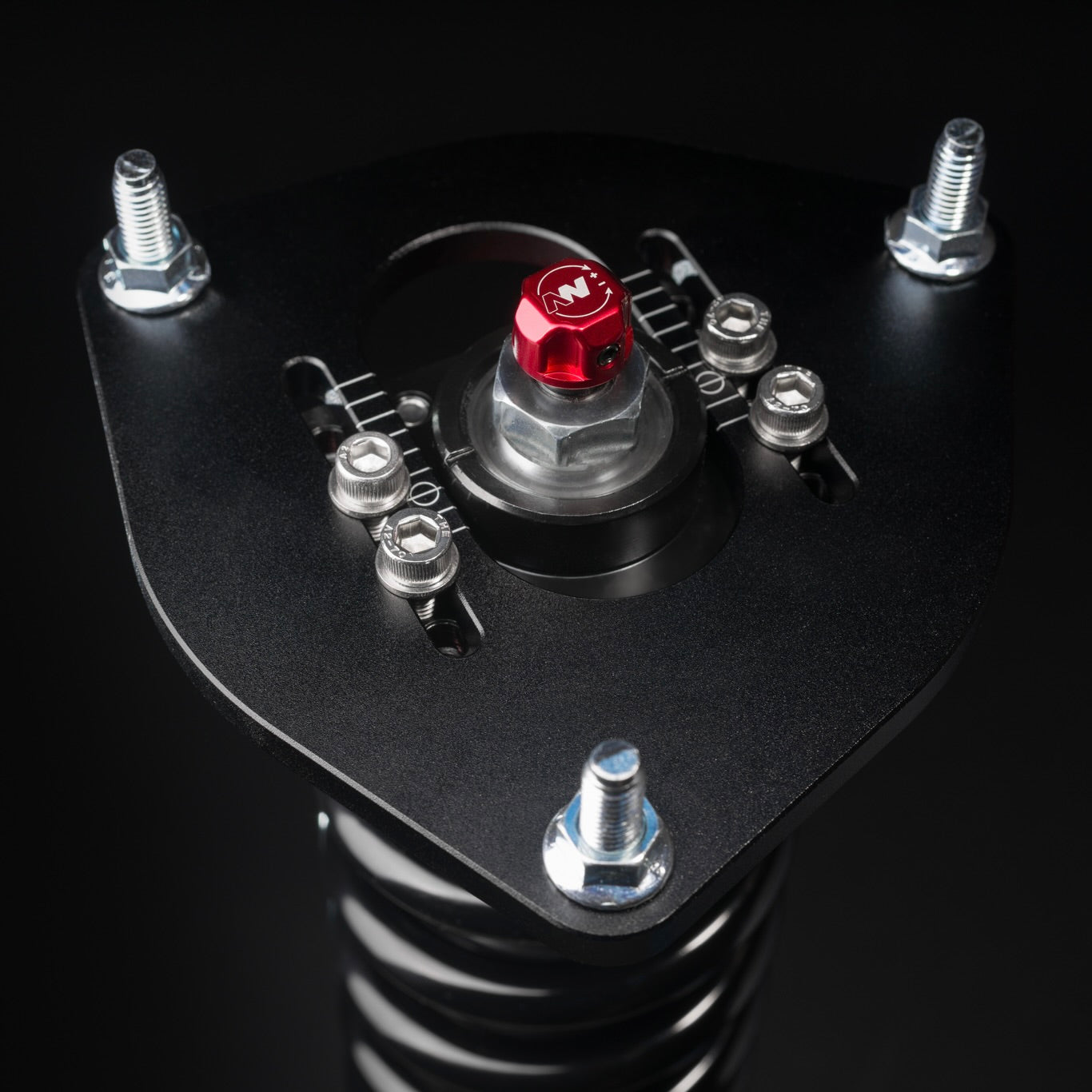 • T6 6061 aluminum mounts and camber plates reduce weight without compromising strength.