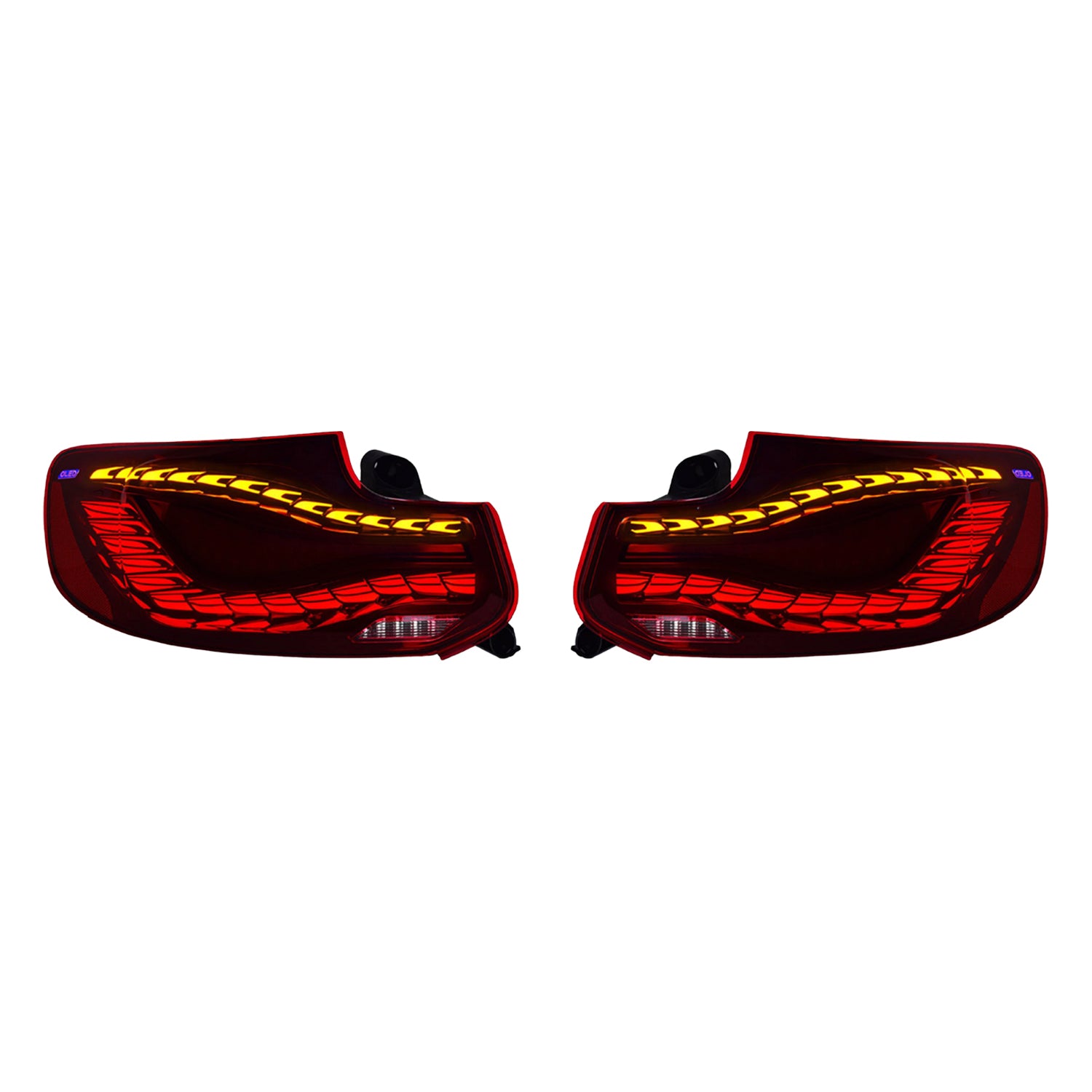 Upgrade the rear end of your BMW 2 Series with our striking OLED GTS-Style V2 Taillight Assemblies, designed to turn heads with their aggressive, dragon-scale-inspired design. Perfect for any BMW enthusiast looking to. These taillights maximize lighting performance while adding an even more bold, sinister flair to your car’s appearance. The bright dual dragon scale design not only elevates your road presence but also improve safety by reducing the risk of rear-end collisions thanks to their bright, attention-grabbing output.