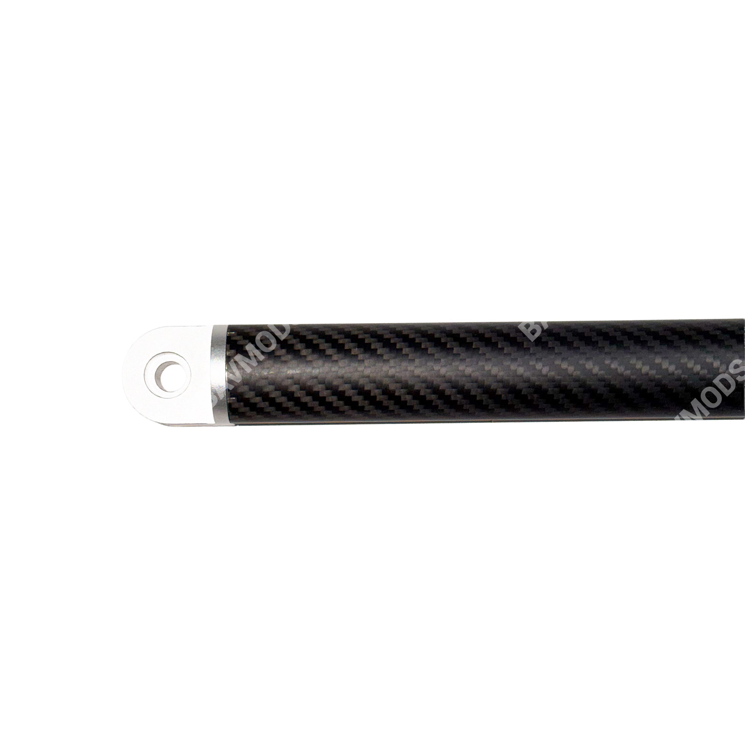 Crafted from high-strength carbon fiber with reinforced aluminum ends, this brace significantly reduces front-end flex by connecting both strut towers and distributing load forces evenly across the chassis. The result is a more planted, confident front end that maintains precise suspension geometry even under hard driving and high lateral loads.