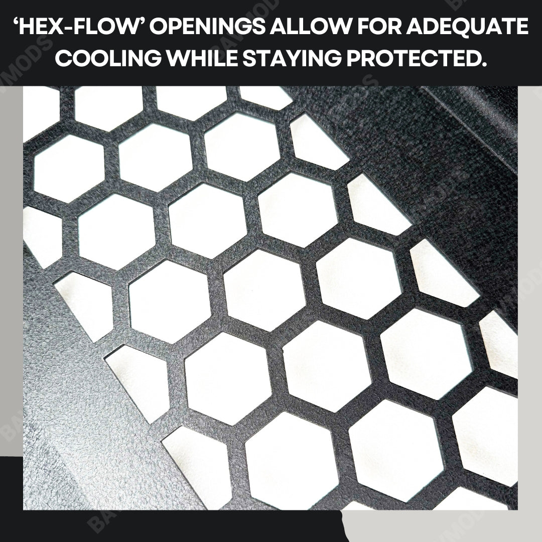 A precision-cut vented louver system channels air directly into the oil cooler, ensuring that protection never comes at the cost of temperature control. The angled fins help direct airflow efficiently while deflecting debris, maintaining consistent cooling performance even under demanding driving conditions.