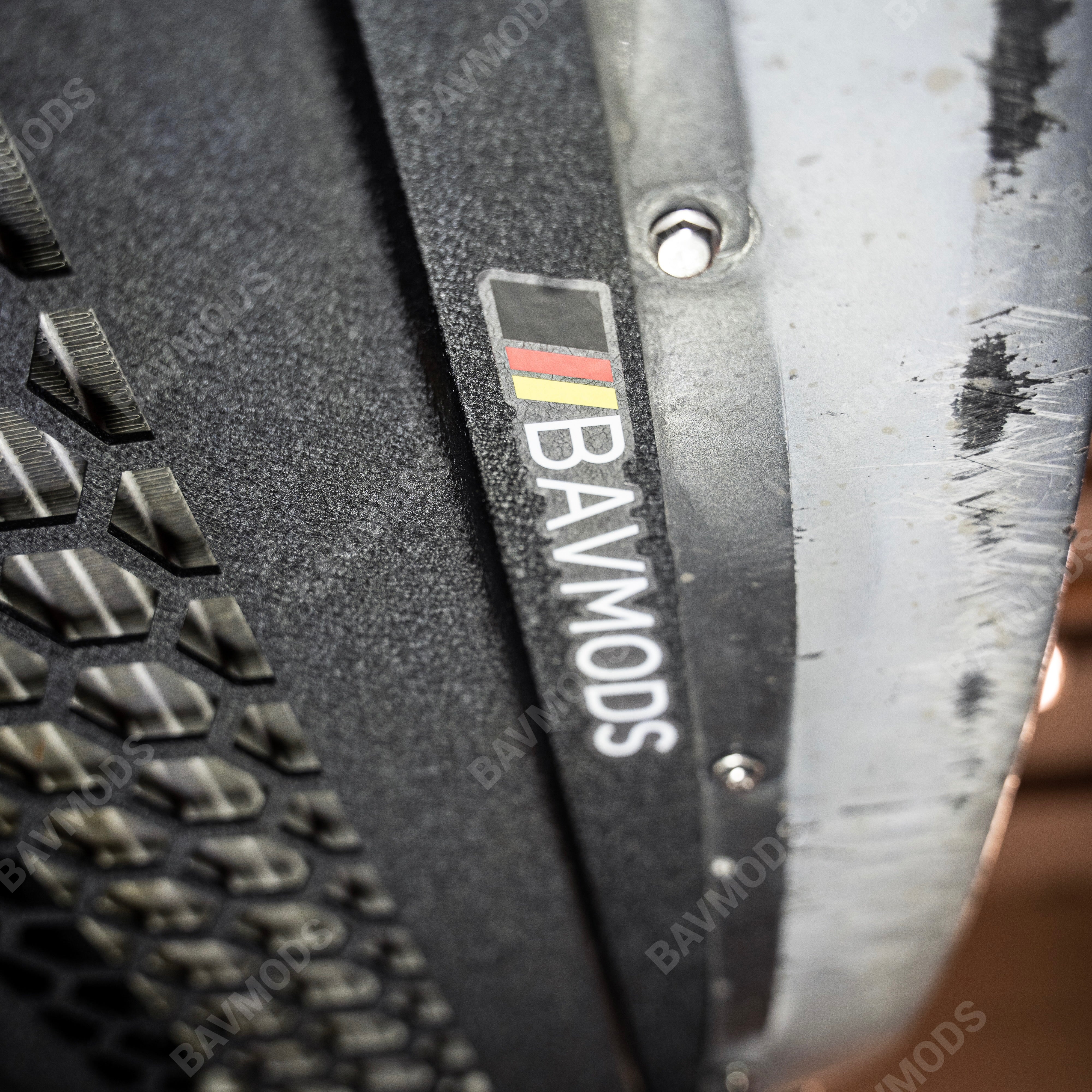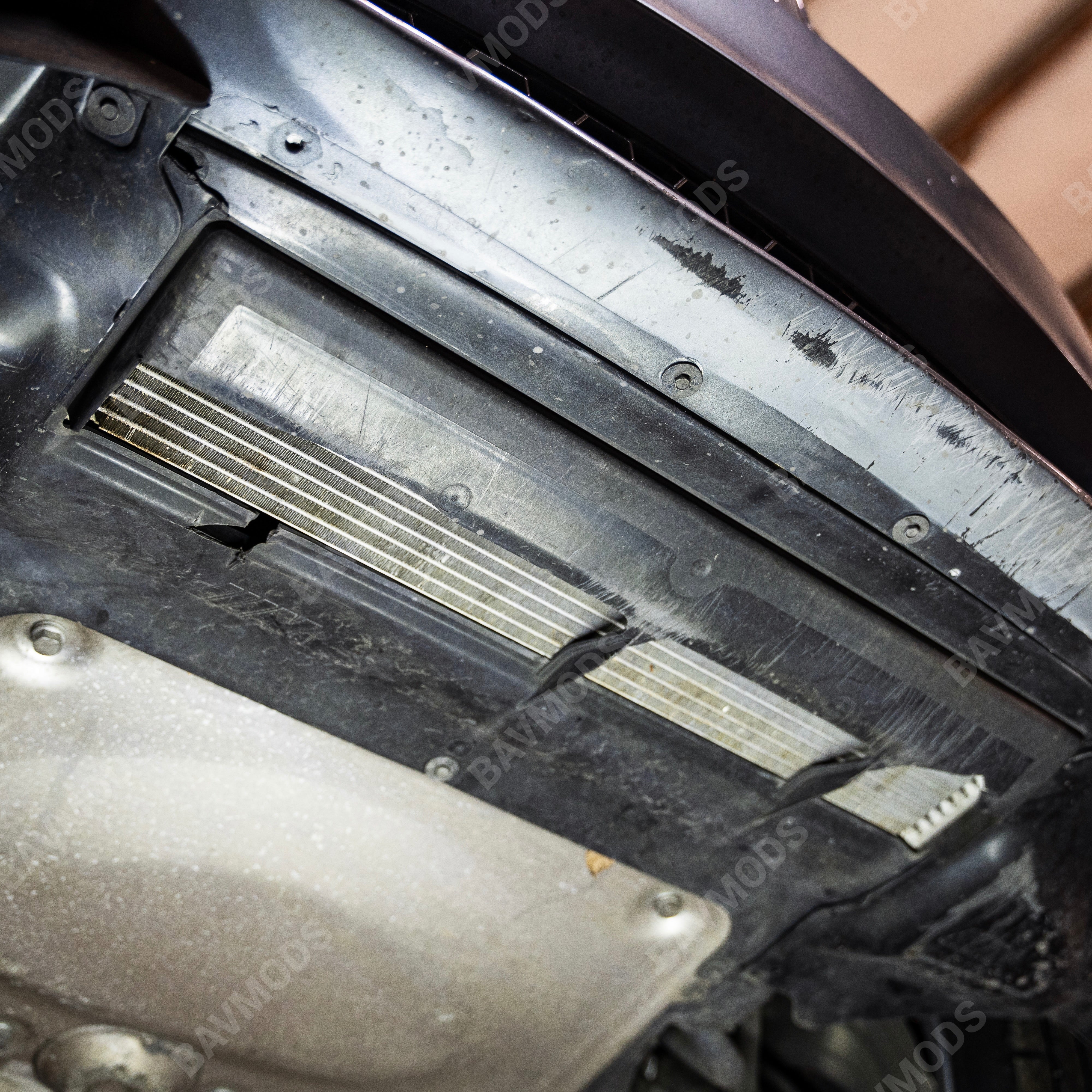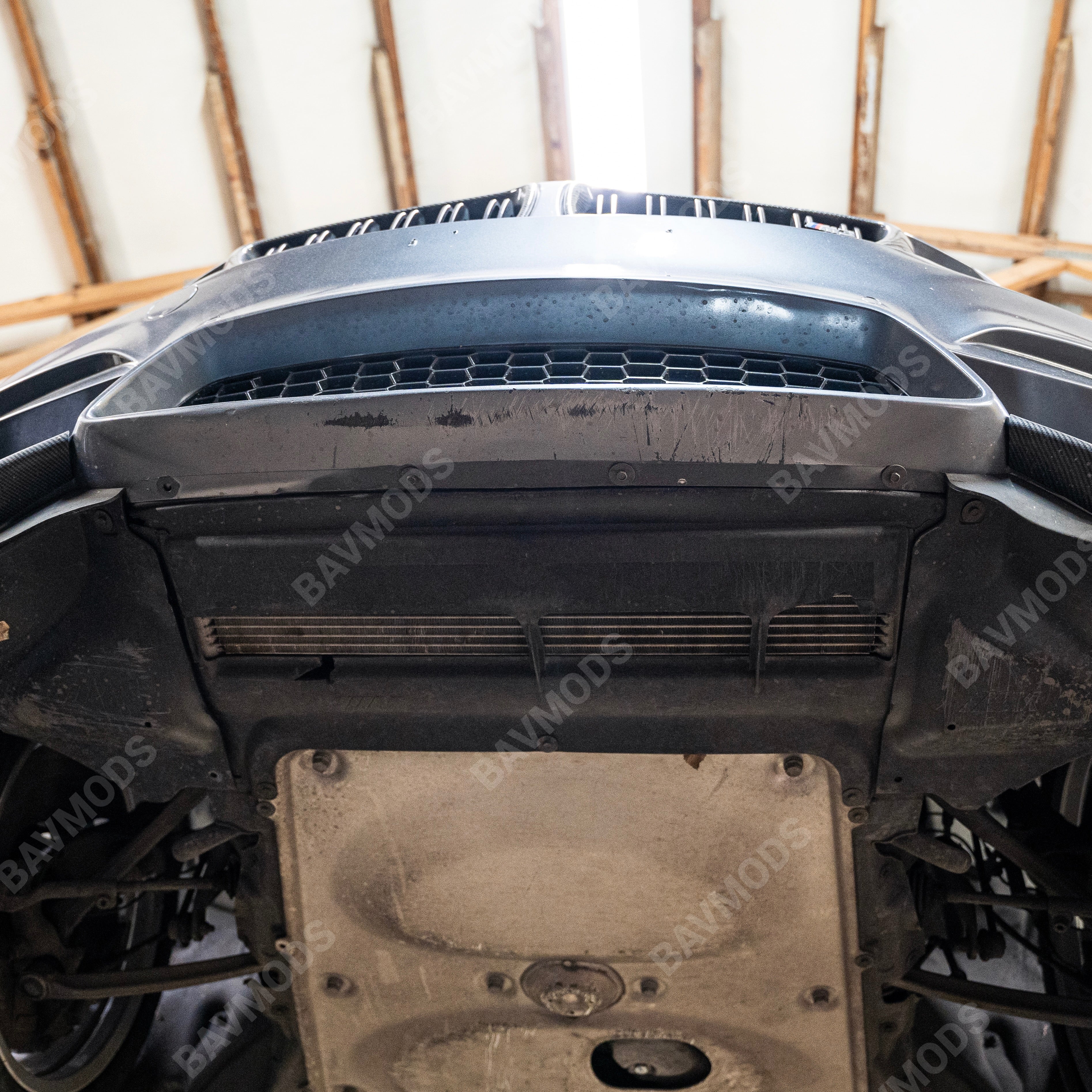 From the factory, the M2 Competition’s exposed oil cooler sits low in the front bumper — making it highly susceptible to road debris, track curbing, and daily driving hazards. The BAVMODS® Aluminum Skid Plate solves this issue with a thick, lightweight, corrosion-resistant aluminum construction that shields the oil cooler and underbody from impacts and damage while maintaining proper ventilation.