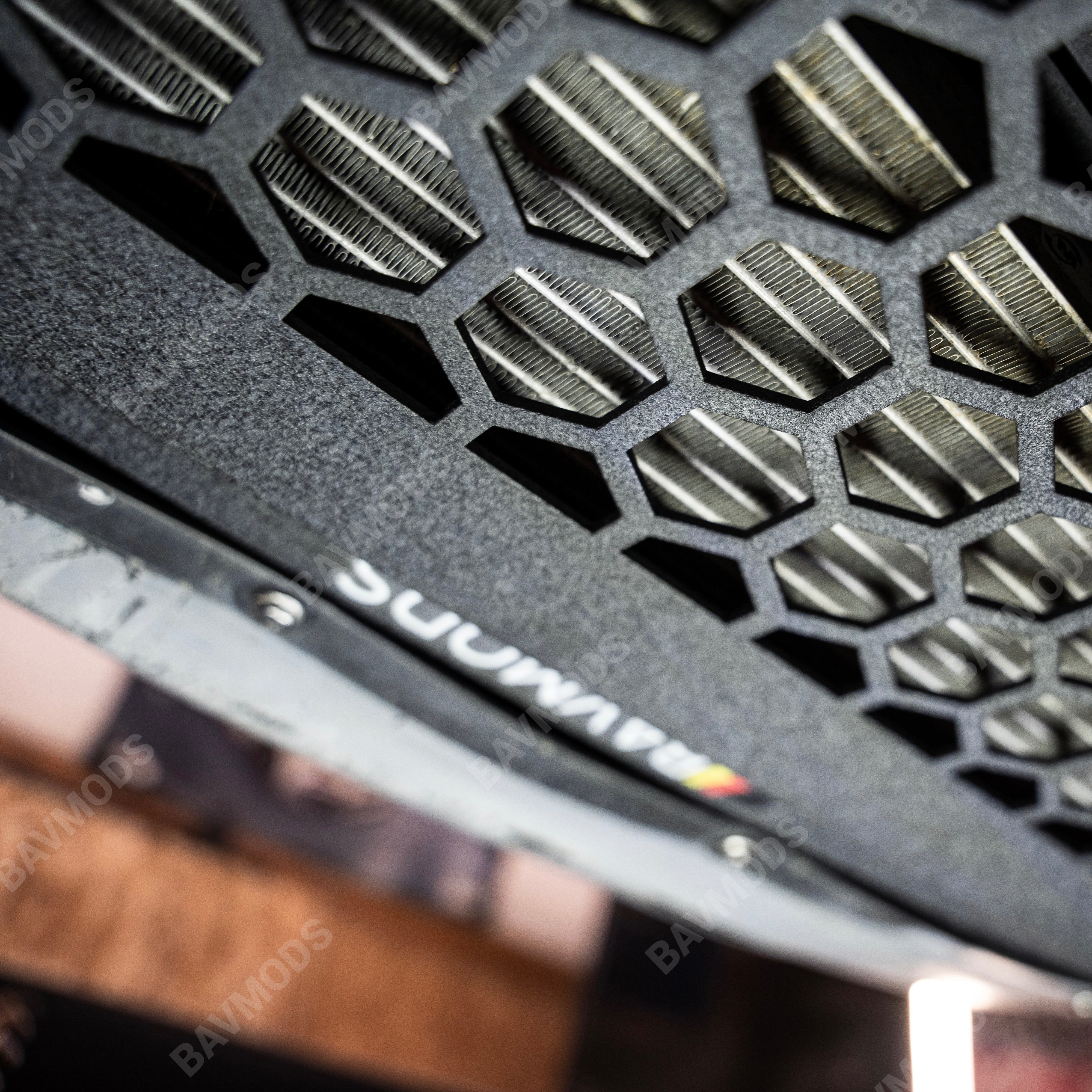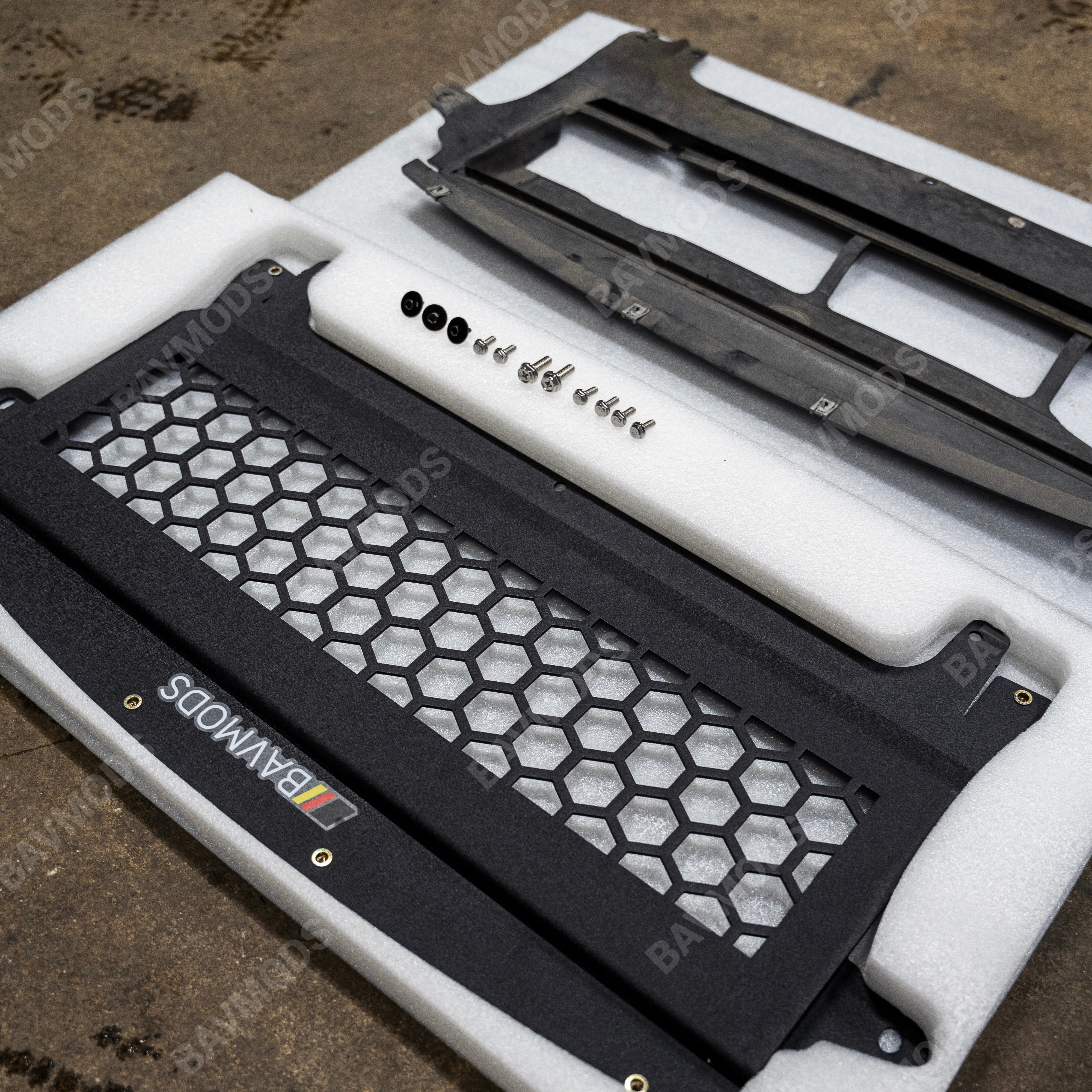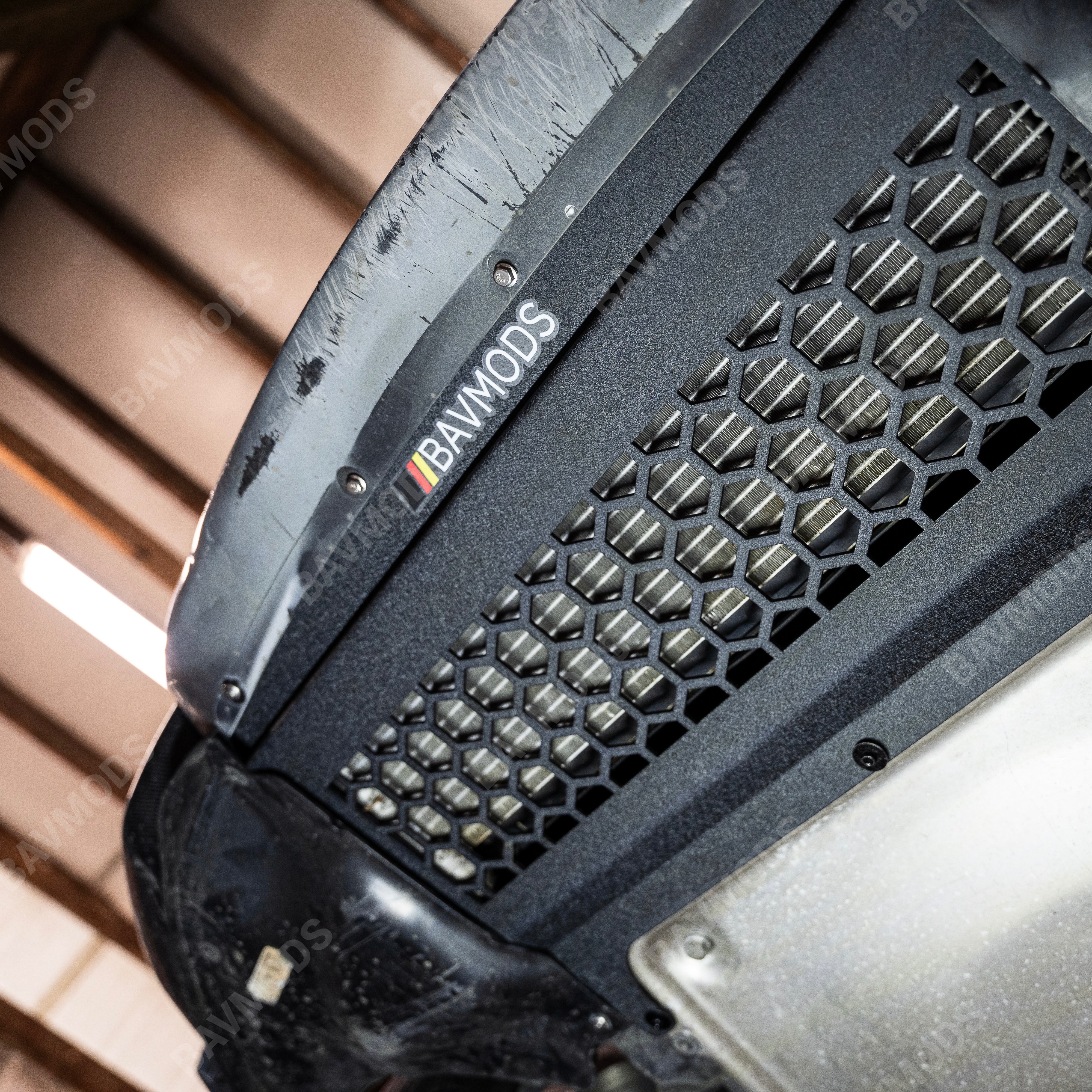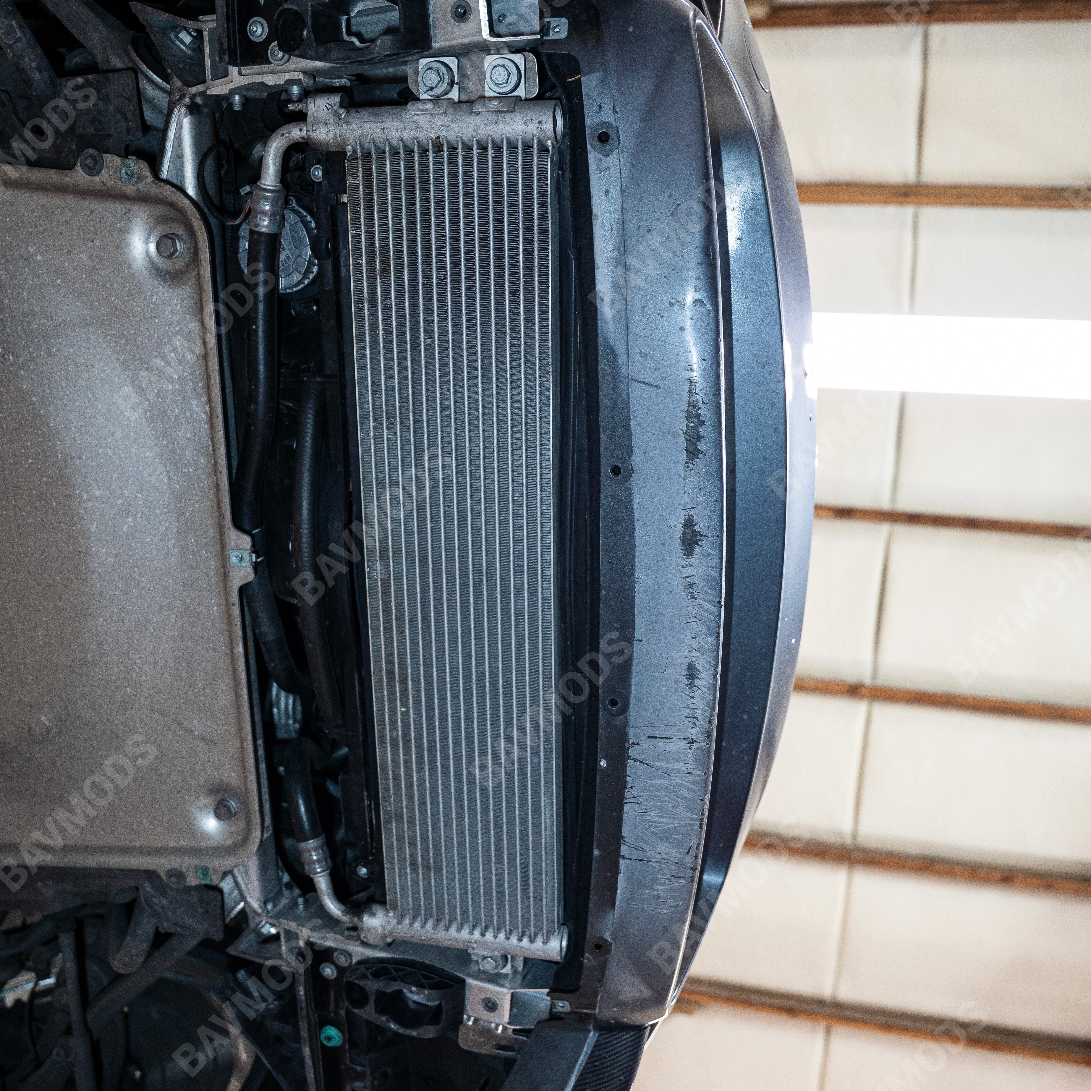 From the factory, the M2 Competition’s exposed oil cooler sits low in the front bumper — making it highly susceptible to road debris, track curbing, and daily driving hazards. The BAVMODS® Aluminum Skid Plate solves this issue with a thick, lightweight, corrosion-resistant aluminum construction that shields the oil cooler and underbody from impacts and damage while maintaining proper ventilation.