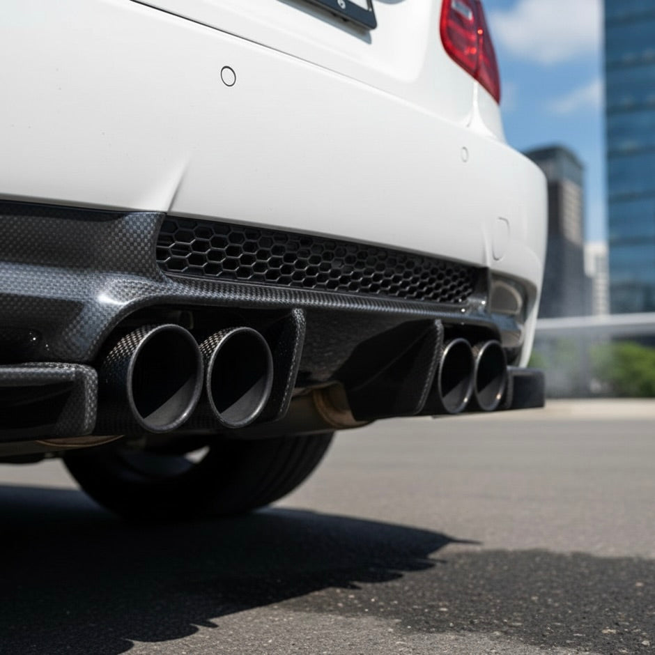 BMW E9X M3 Dry Carbon Fiber Exhaust Tip Covers – Lightweight Dry Carbon, Easy Band Clamp Installation