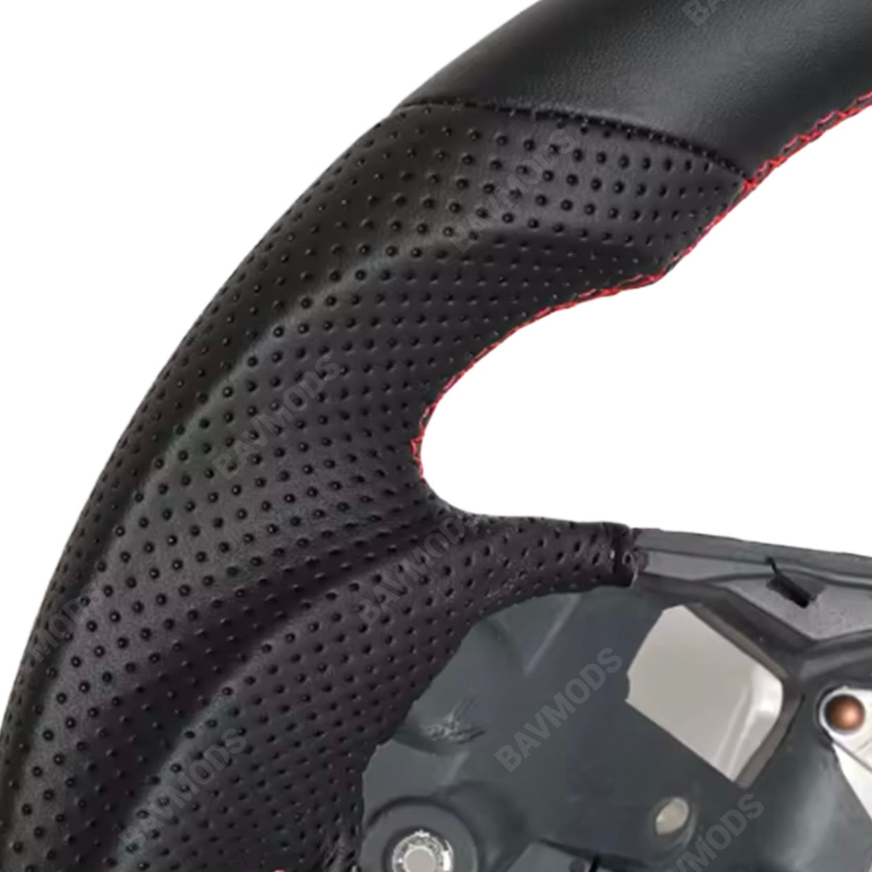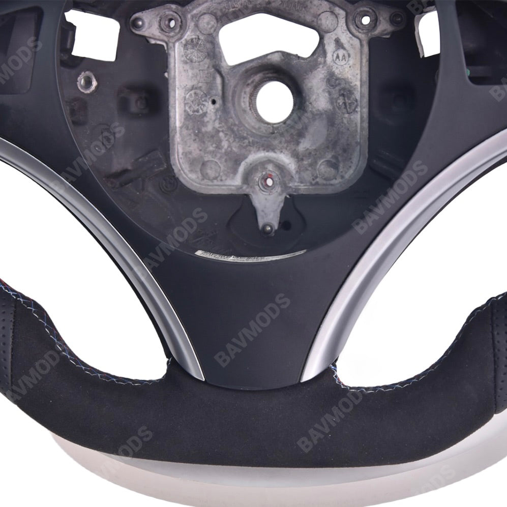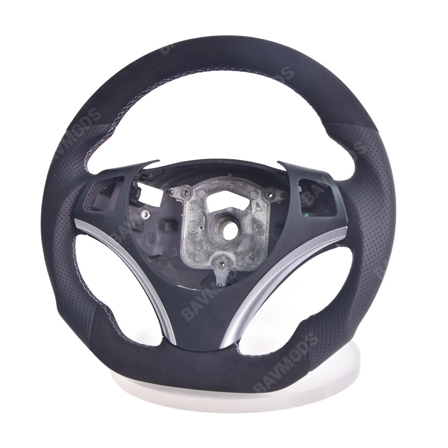 Custom BMW 1 & 3 Series Sport Steering Wheel Black Leather Airbag Cover | Black Leather with M-Sport Tri-Color Stitching | E90 E91 E92 E93 E81 E82 E87 E88