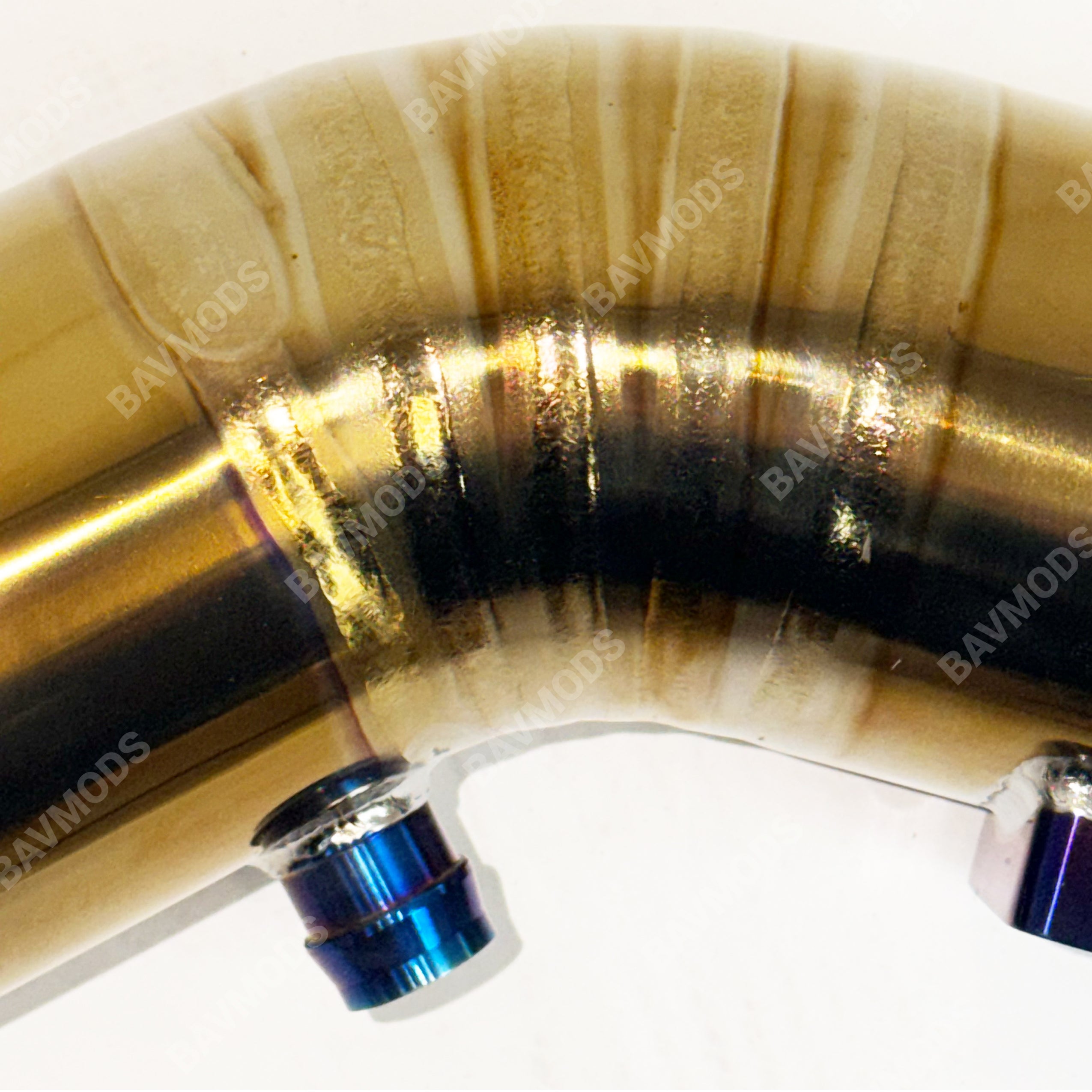 Built from aerospace-grade titanium, this system takes the already ferocious M4 Competition and elevates it with an intake that’s as functional as it is breathtaking. Each titanium pipe undergoes a precise heat-treatment process, producing a radiant gold-to-bronze gradient finish that subtly shifts under light. This isn’t painted or coated — it’s real heat-tempered titanium coloration, permanently embedded into the metal for a luxurious, exotic appearance that turns every engine bay into a showpiece.