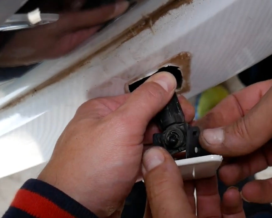With the cover forward, extend the nozzles until the painted cover can carefully be removed from the nozzle body. The washer nozzles can also be disconnected by depressing the middle push connector.