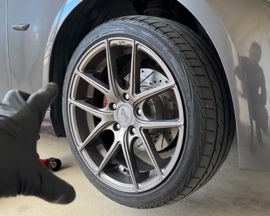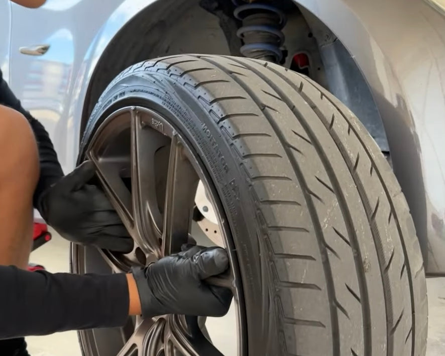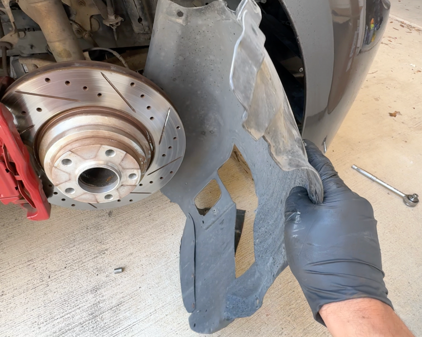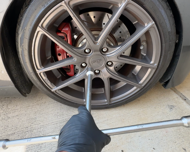 Since we are using one floor jack, re-install the wheel and repeat the same process on the other side by removing the wheel liner.