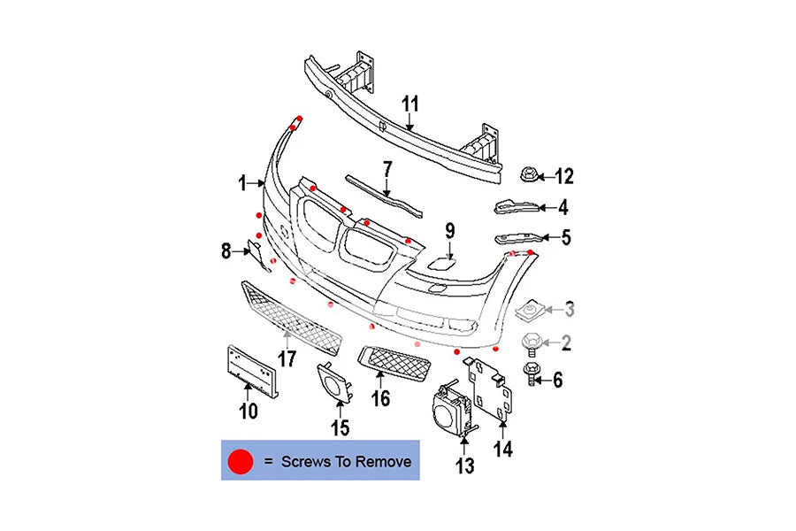 Good job removing your front bumper! Remember to re-install all fasteners accordingly when it's time to put the front bumper back on.