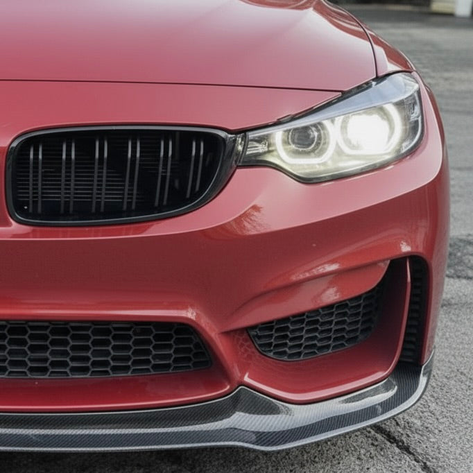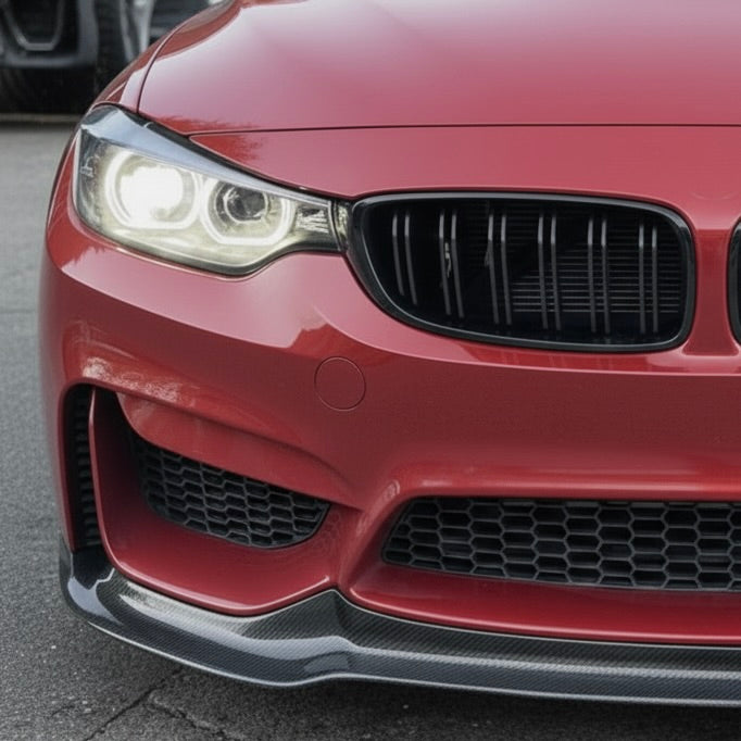 Crafted from real 3x3 twill carbon fiber, this front lip delivers a deep-gloss finish that flows seamlessly with the M4’s sharp front contours. The flush-fit design hugs the factory bumper with exact alignment, while the forward-projecting “fang” corners amplify the M4’s wide, menacing stance. Every angle has been modeled to enhance both aerodynamic efficiency and visual impact — creating a front end that looks sculpted by the wind itself.