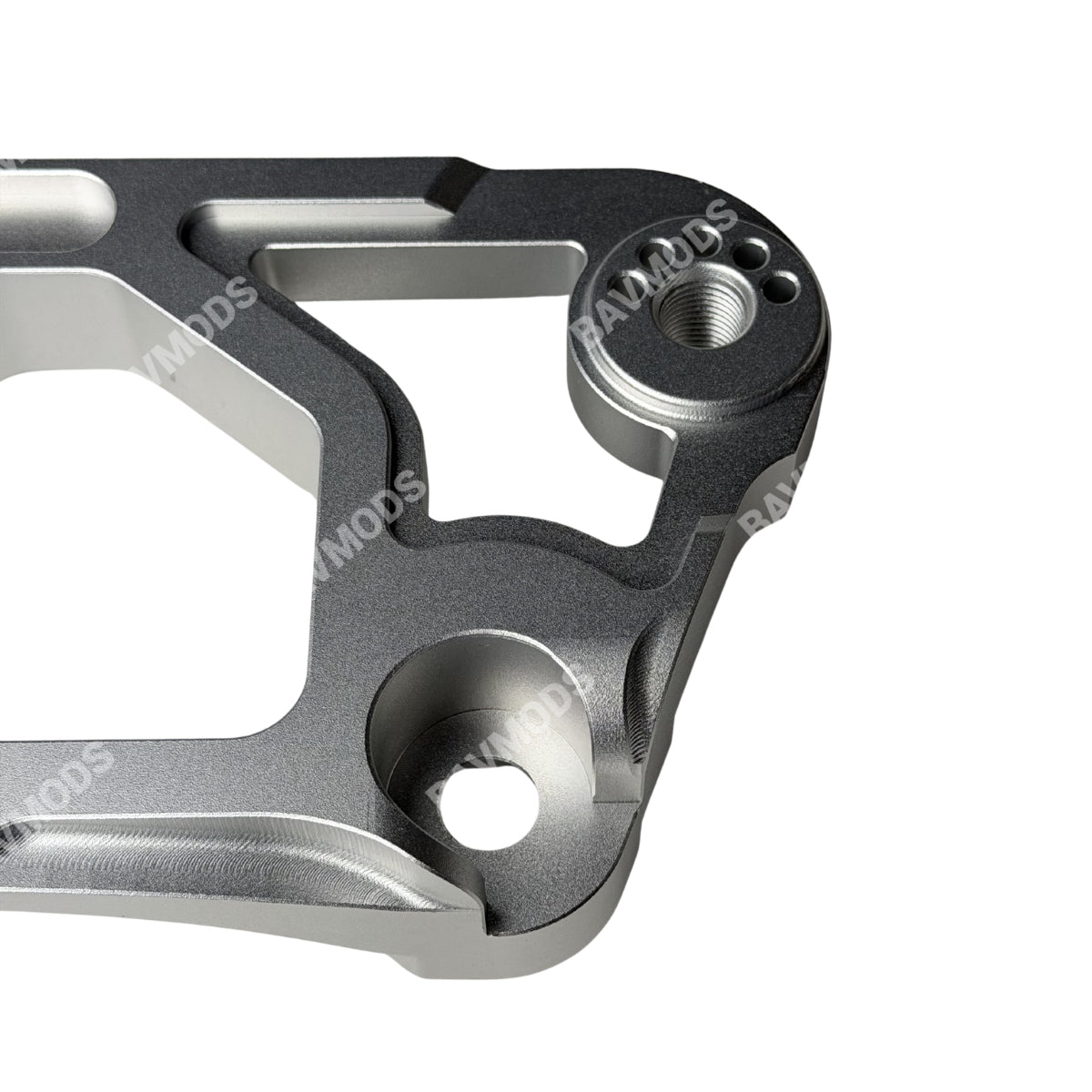 The billet aluminum reinforcement bracket redistributes torque loads evenly across the subframe, reducing flex and enhancing power transfer during launches, corner exits, and aggressive shifting. The result is sharper rear-end stability, improved throttle precision, and better control under load — all while maintaining everyday livability.