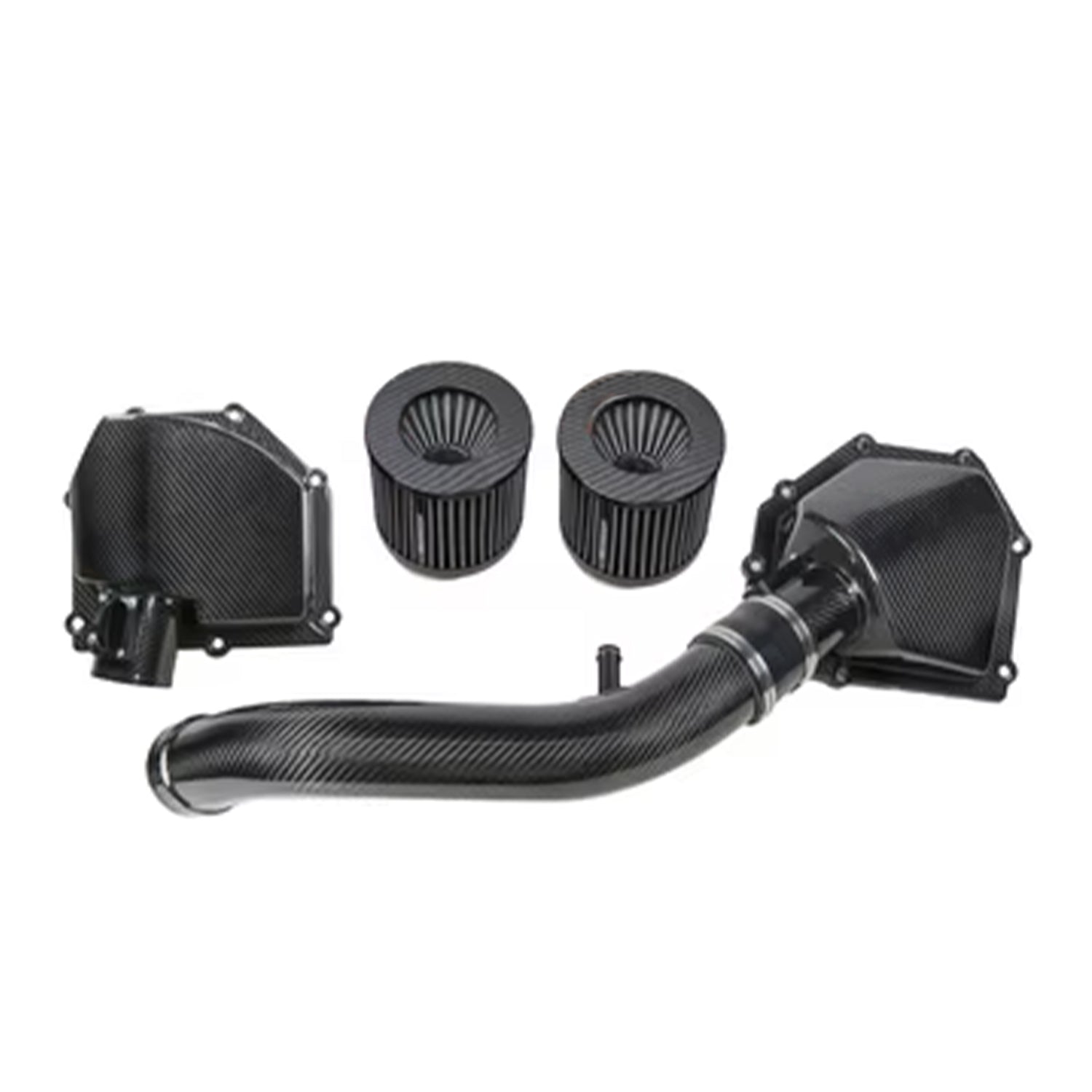Every component, from the carbon housings to the silicone couplers, is optimized for maximum flow efficiency and minimal turbulence. The dual high-flow cone filters channel air to each turbo independently, reducing lag and creating a smoother, more linear powerband. The closed design keeps intake air temperatures stable, making it ideal for both spirited driving and track conditions.