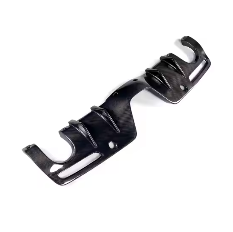 NOTE: This is a carbon fiber add-on kit designed for easy installation. It fits over the top of the factory plastic diffuser and is not a direct clip-in replacement. No need to remove or unclip your stock diffuser—simply install over the existing piece for a hassle-free upgrade.