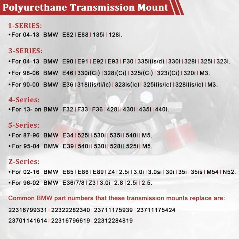Upgraded Polyurethane Transmission Mounts – Fits BMW E30 E36 E46 E82 E88 E90 E92 E93 F30 | 328i 335i M3 - BAVMODS®