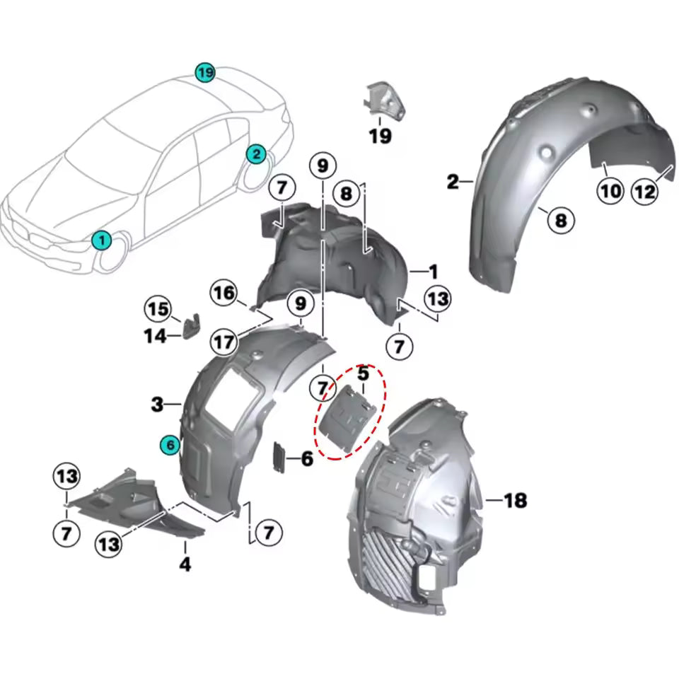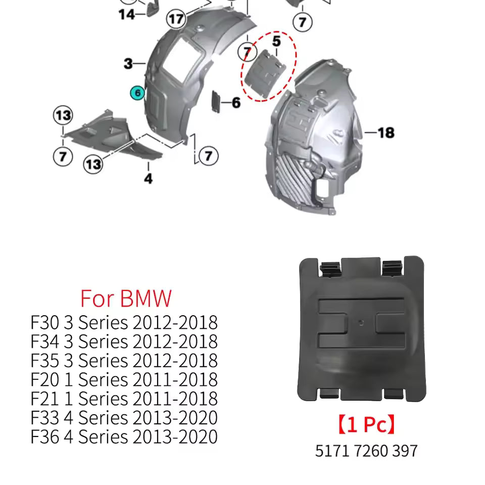 BMW 1/2/3/4 Series Front Fender Liner Headlight Access Cover | Part No. 51717260397 | Fits F20 F30 F34 F33 F36