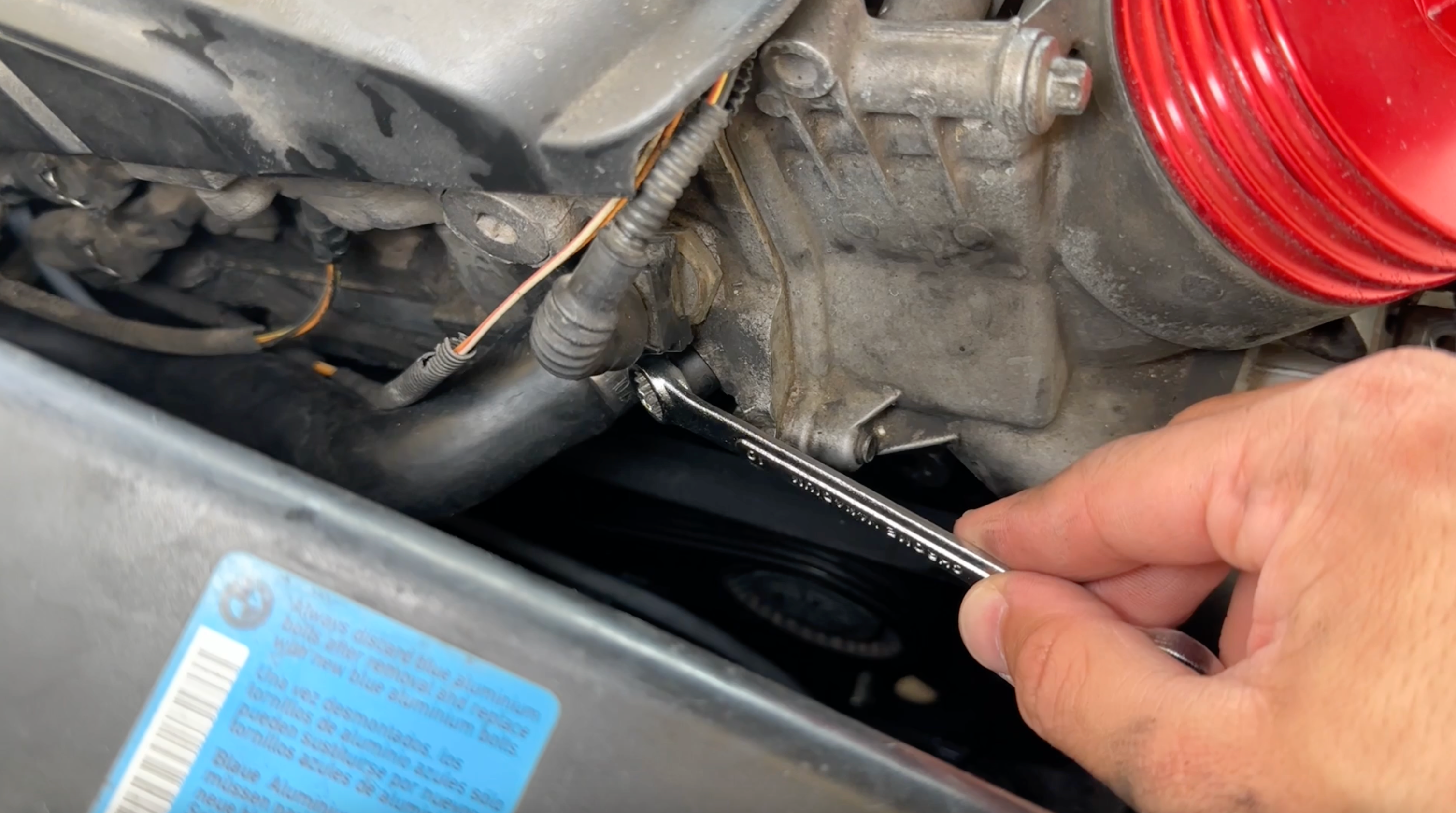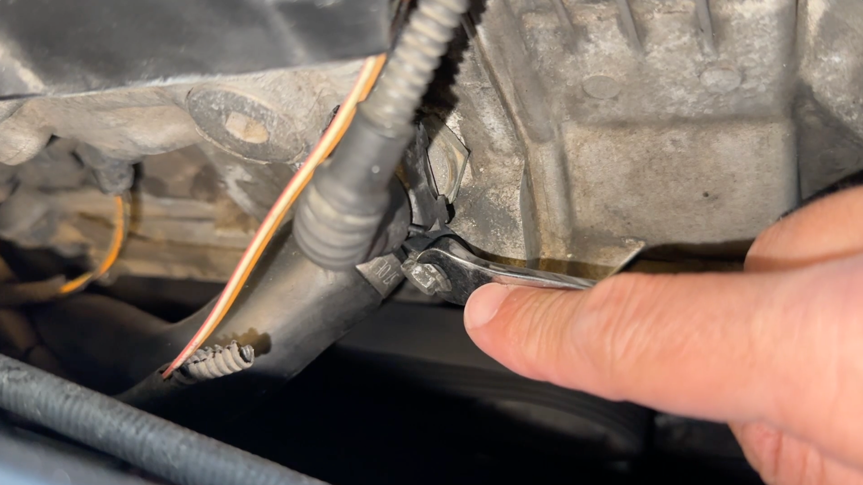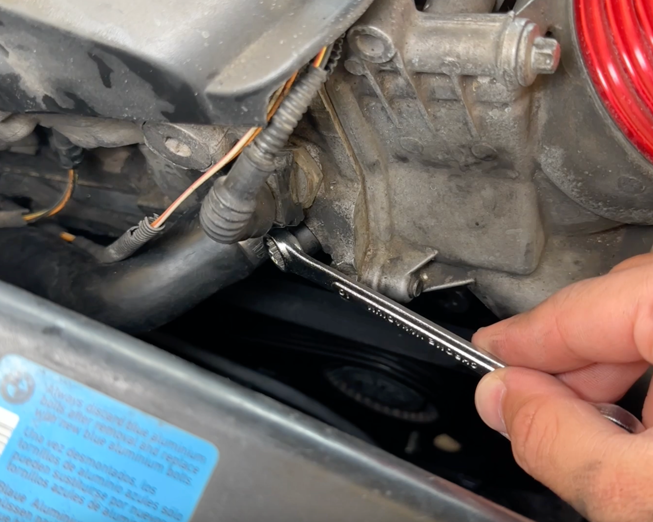 Remove the front screw from the cylinder head hose using a 10MM open-ended wrench.