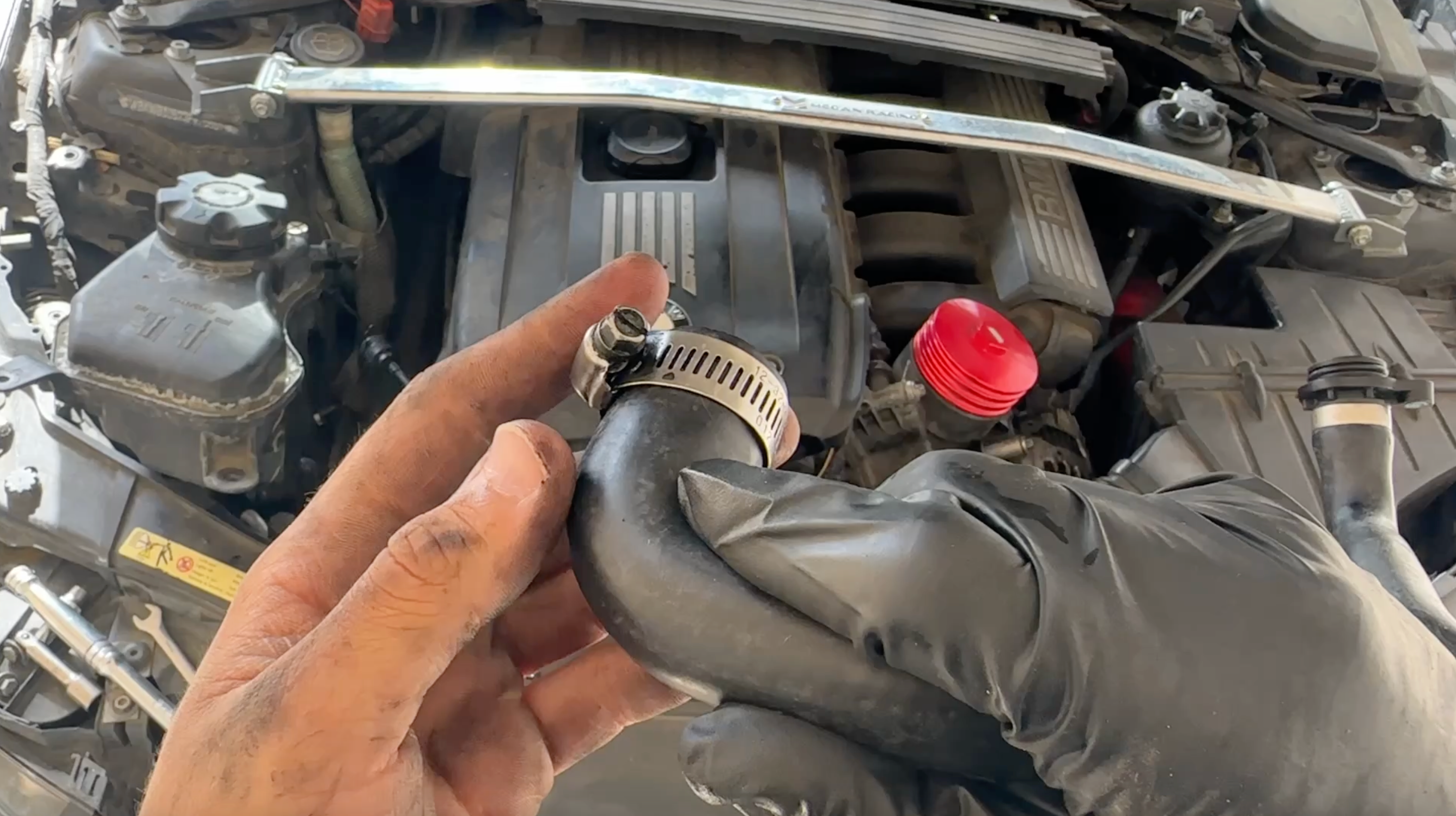 Transfer the band clamp from the old hose to the new one. Install the band clamp so the screw faces upward, so you can easily reinstall it and remove it in the future.
