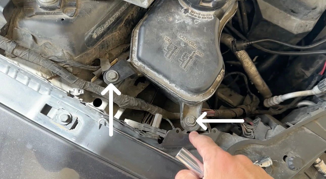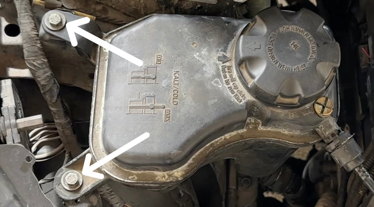 Install and hand-torque the expansion tank screws with a 10MM socket and ratchet.