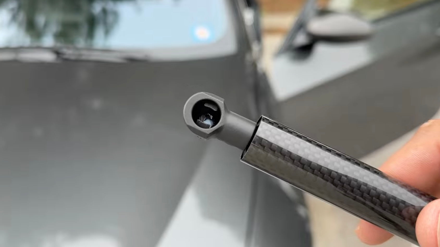Apply lubricating grease to the inside pivoting point of the new hood strut. High-quality struts such as these ones we offer come pre-greased and ready to install right out of the box.