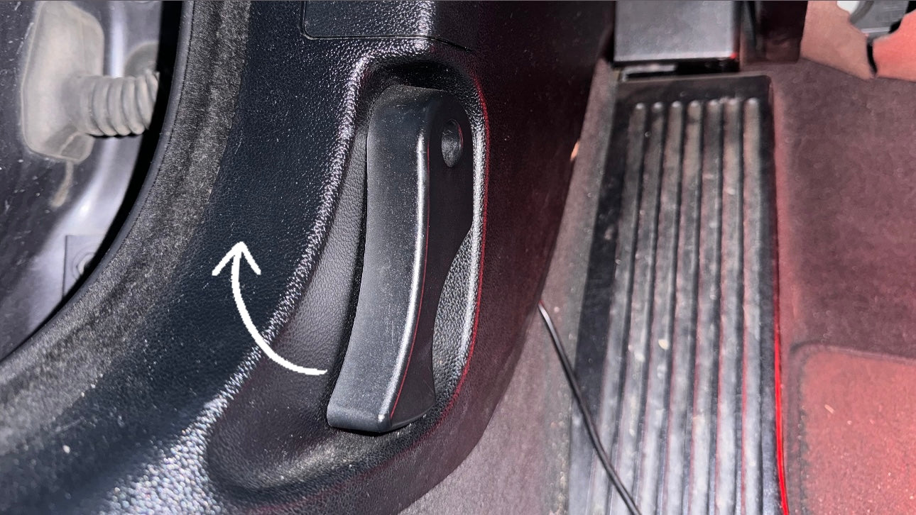 Open the front hood by pulling the hood latch towards you. An audible noise will be heard when the hood has been properly unlocked.