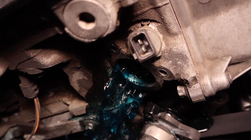 As can be seen above, the factory o-ring has worn out and become flattened. This flat o-ring can not seal the engine properly and will leak coolant.