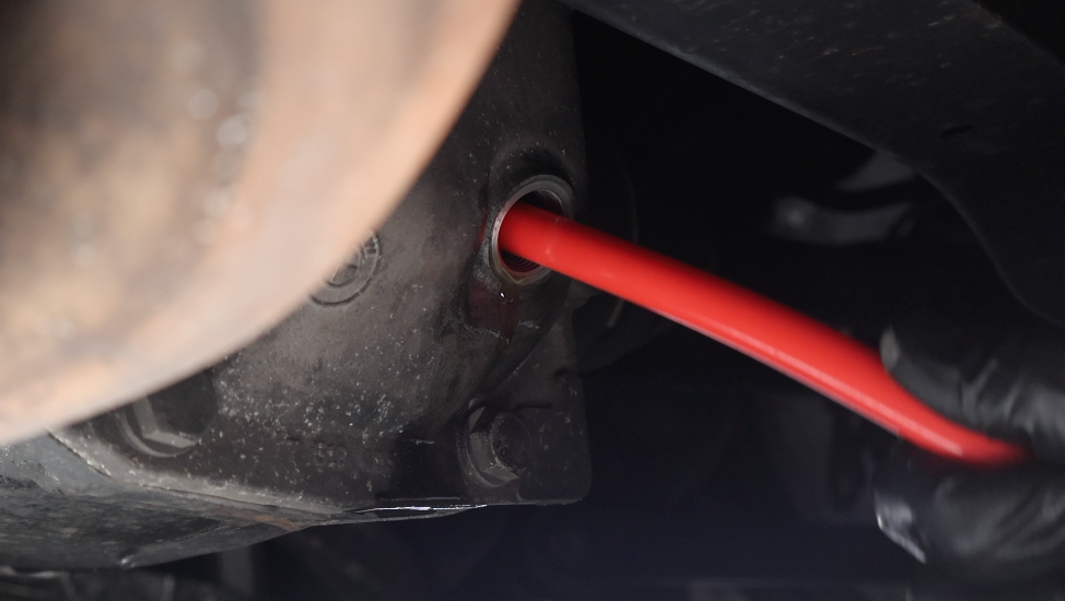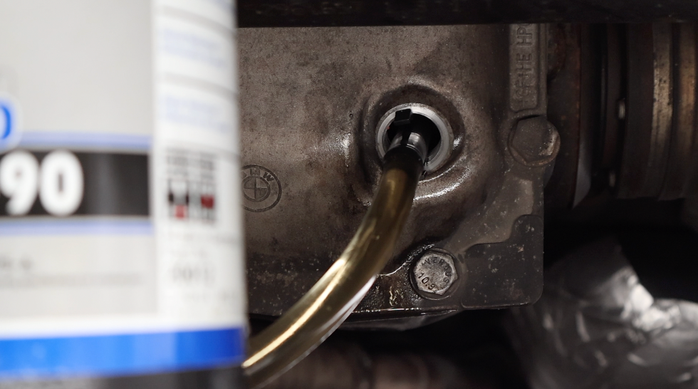 To make this job even easier, we used an easy-fill hand pump that attaches directly to any gear oil container. This significantly reduces the chances of spills and makes the process much more convenient.