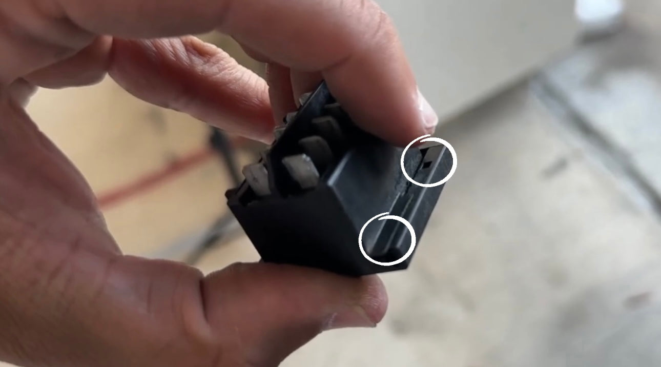 Unlock the fuse box lid by using a pick tool to depress the retention clips (circled) and slide the lid back.