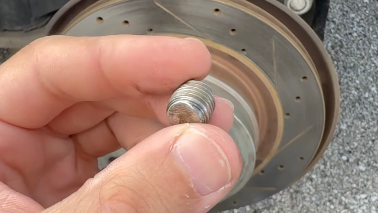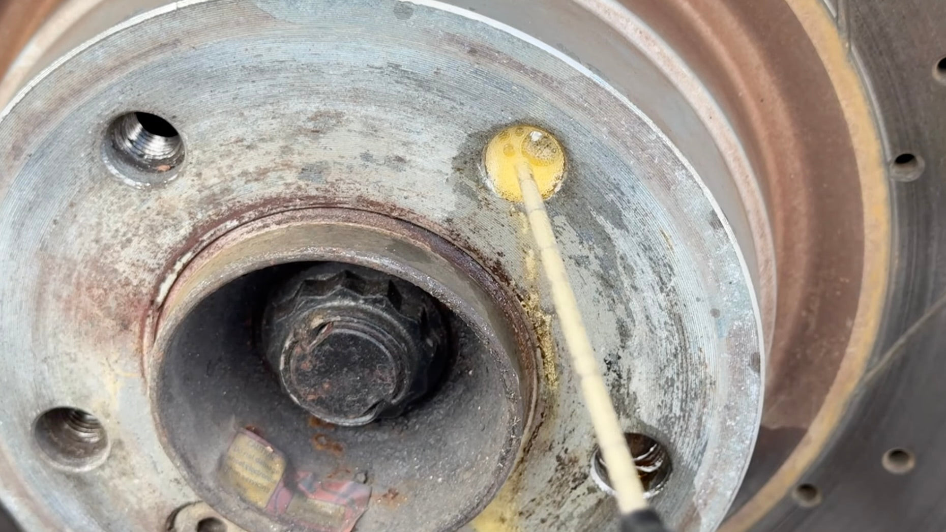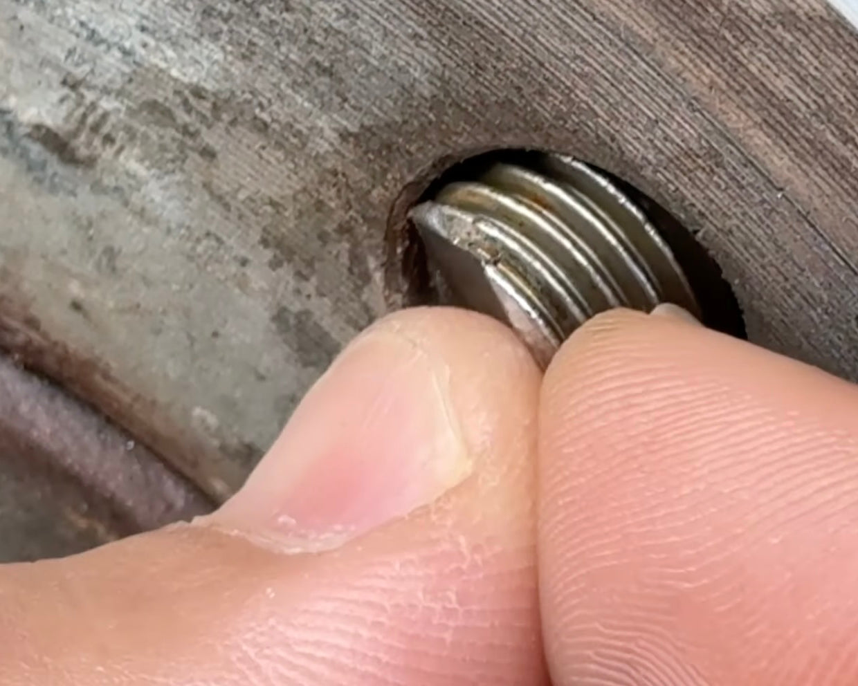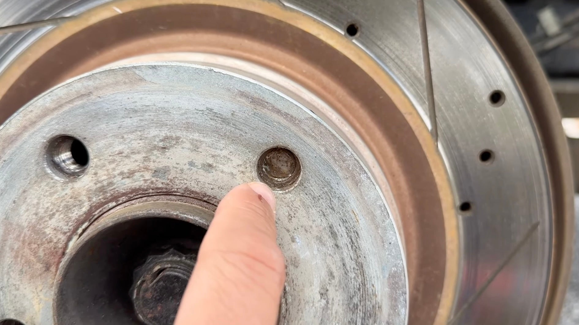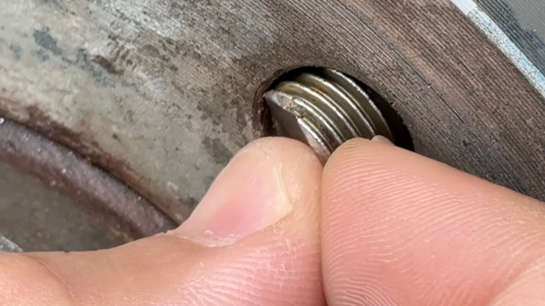 With a new wedge created from the heat of the flame torch, continue to patiently tap the stuck lug nut out in a circular, counter-clockwise motion.