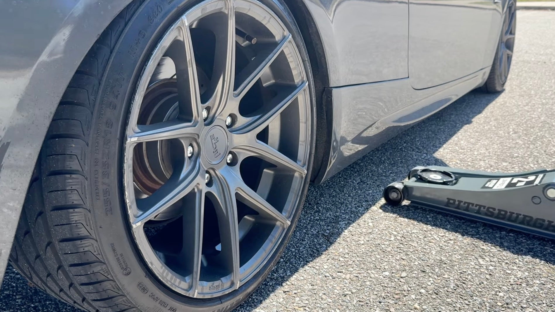 Lift the vehicle off the ground using a floor jack. (Use of jack stands is highly recommended.)