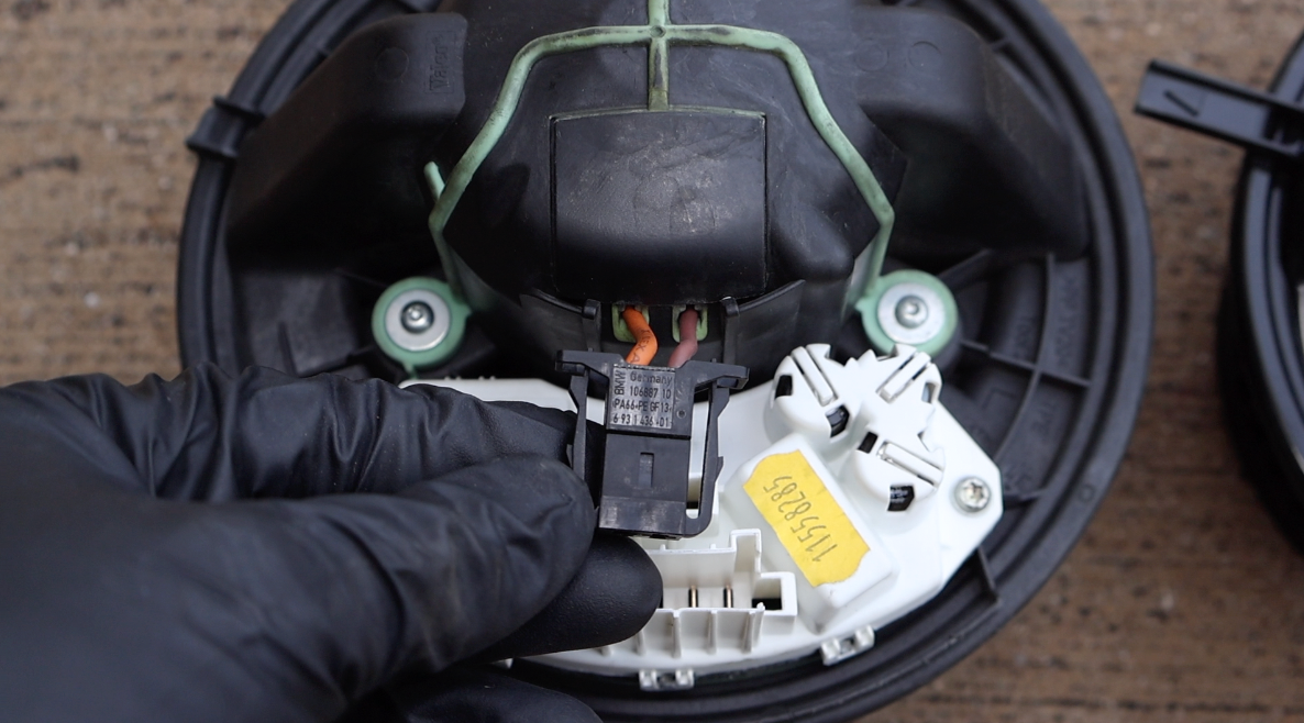 Plug in the new blower motor to the new regulator by plugging in the connector until it makes an audible latching noise.