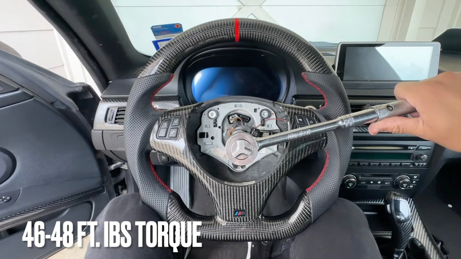 Once the steering wheel bolt is fully hand-threaded into place, torque it down to approximately 48 ft. Ibs. (It is highly recommended to use a torque wrench.)