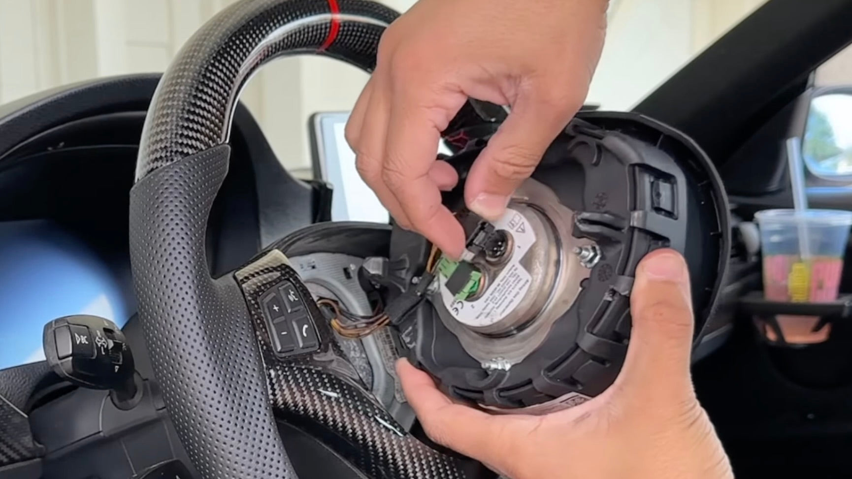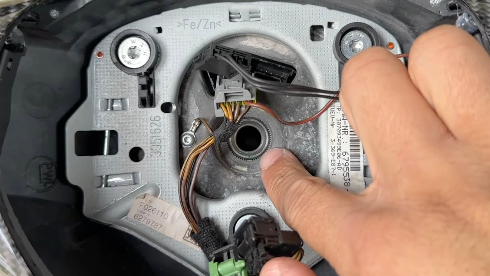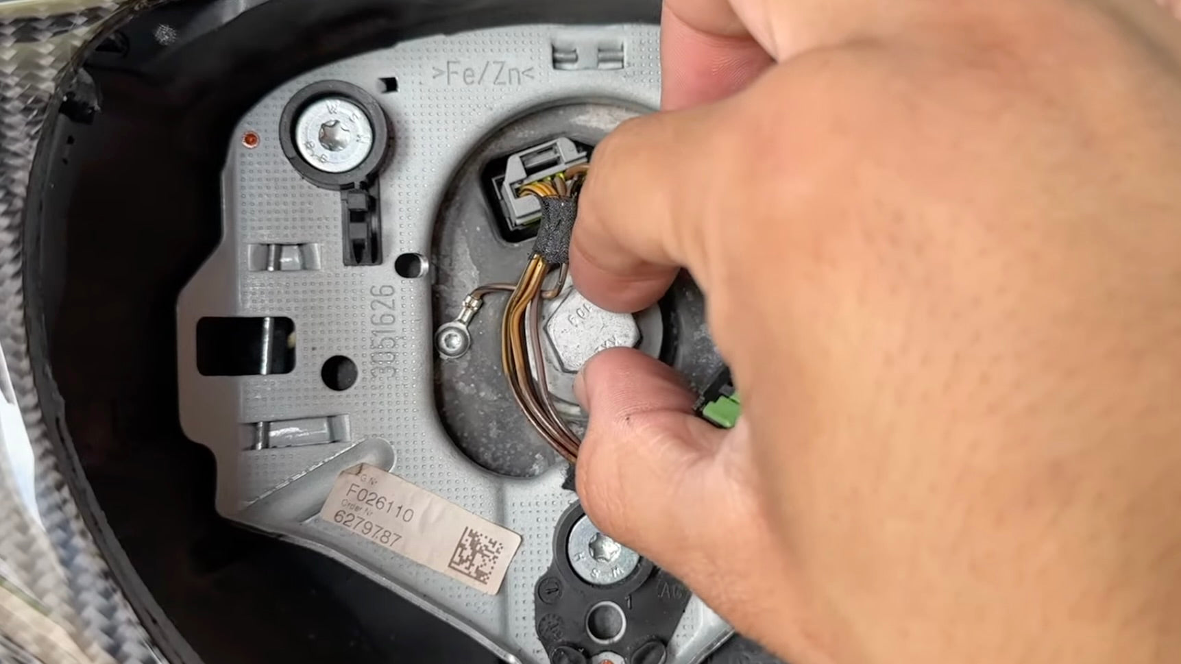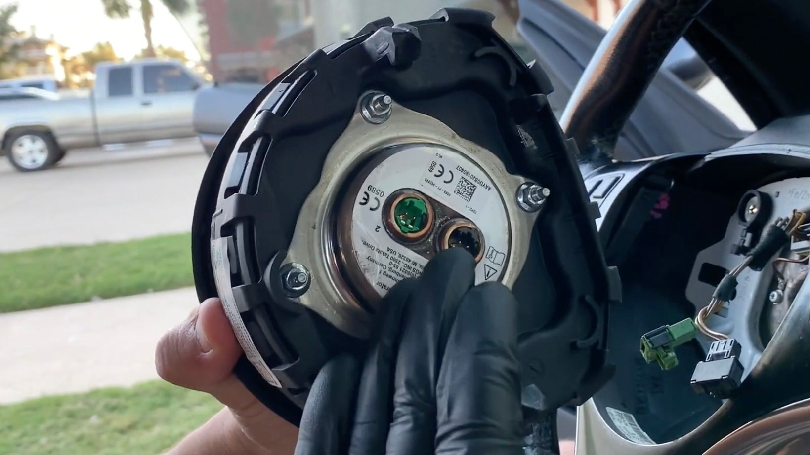 With both airbag connectors removed, the airbag can be fully removed from the steering wheel.