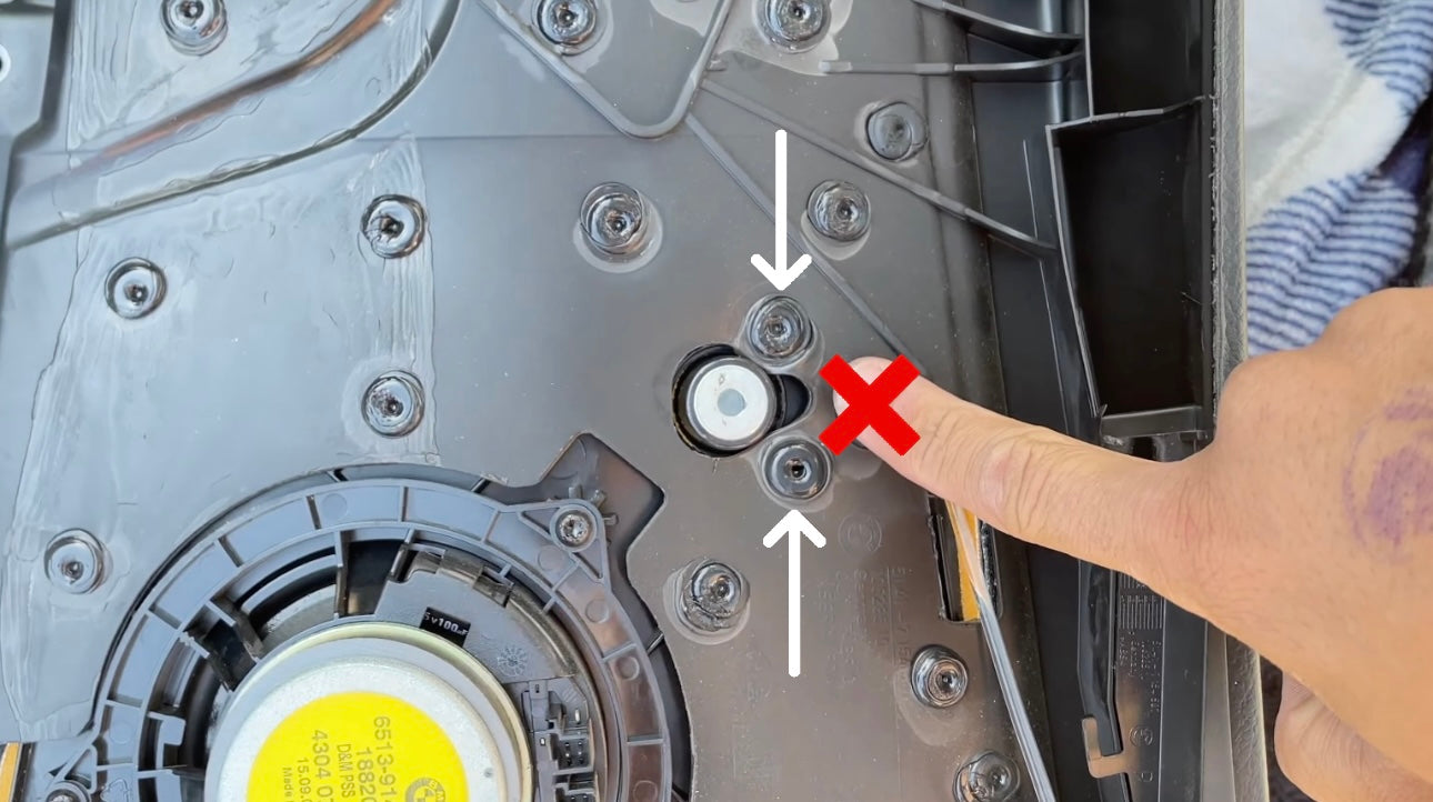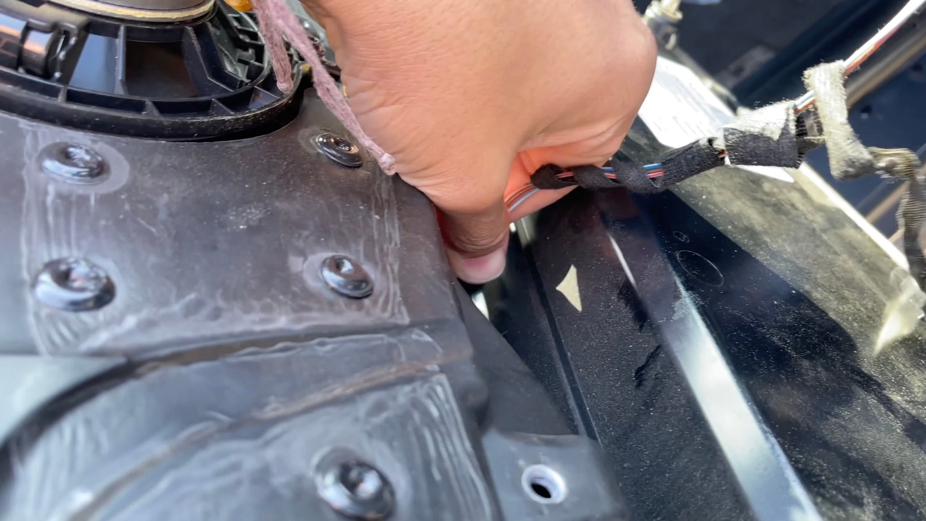 Do not try removing the door panel from the vehicle yet as the speaker cables are still attached. Support the panel in the air while you carry on with the next step.