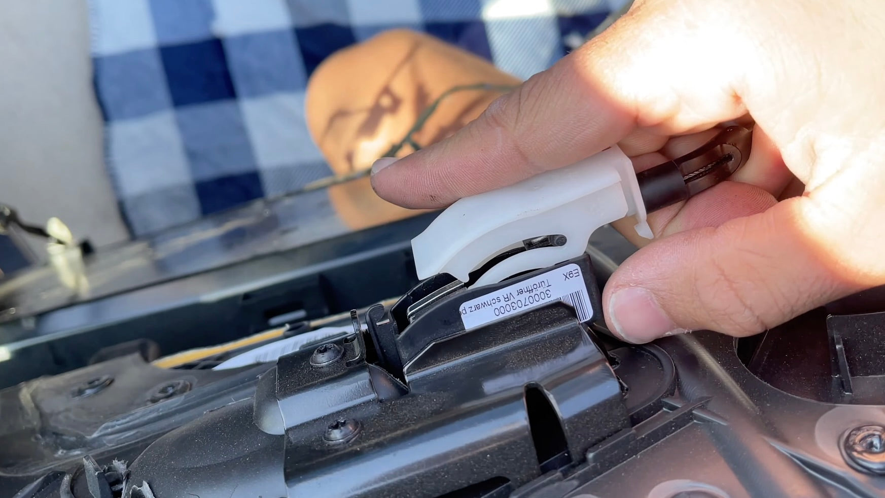 Disconnect the door handle tension cable by lifting it up and forward until it is released.