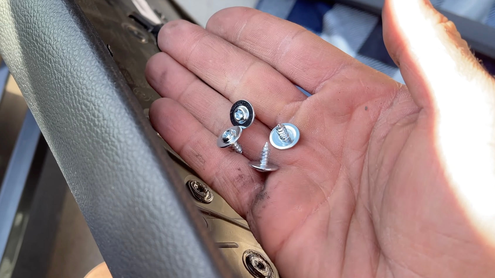 The interior pull handle will come with four brand new screws that will take the place of the rivets we removed.