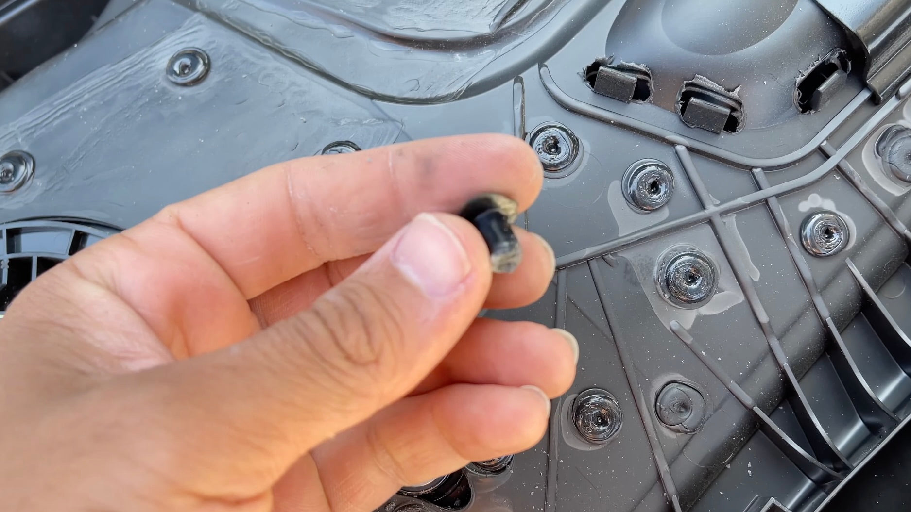 To remove the bottom rivets, repeat the same steps involved in removing the top ones.