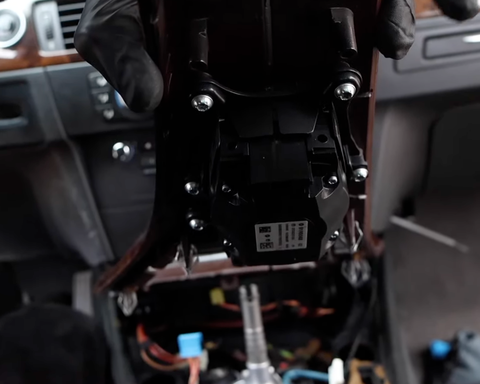 The iDrive controller is secured with six T20 screws. Lift the center console trim and you’ll see the six screws facing downward around the controller.
