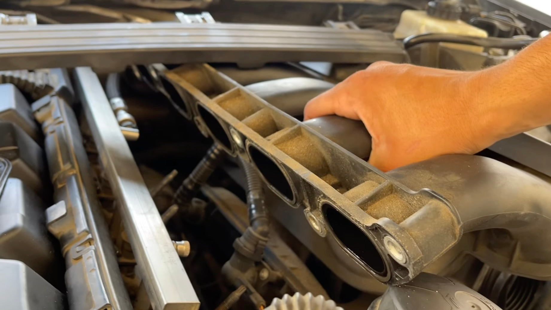 Disconnect the intake manifold from the engine by carefully wiggling it off of the engine face.