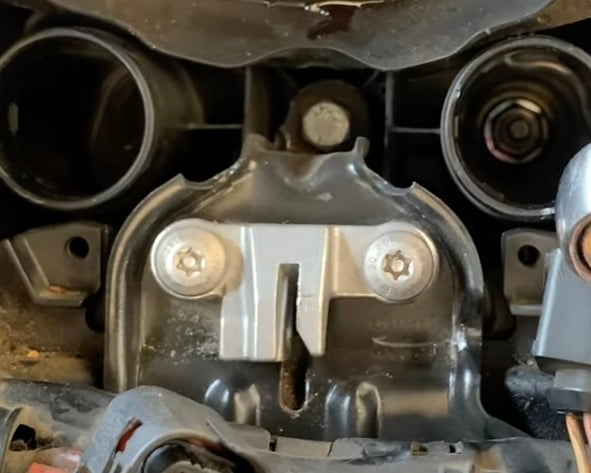 Remove the front 2 engine cover screws using a 5MM allen key. (The sizing for these screws may very depending on year, make or model.)
