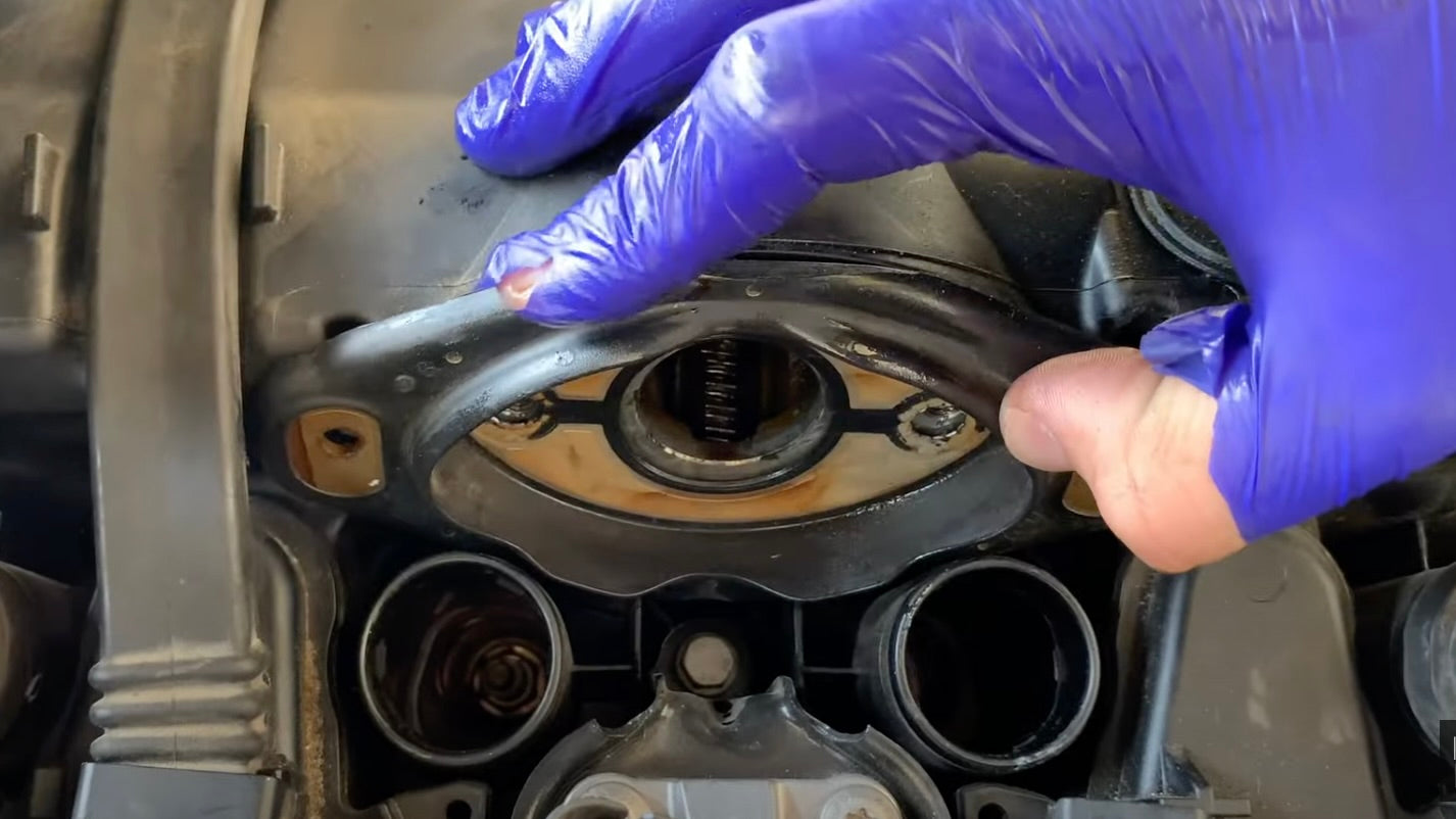 Reinstall the valvetronic motor in place, but do not start installing screws yet. Simply hold the motor with one hand and push it flush against the gasket.