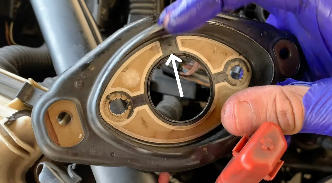 When installing the new gasket, ensure the black stripe shown is facing upwards. Facing it down can cause oil to leak from the gasket.
