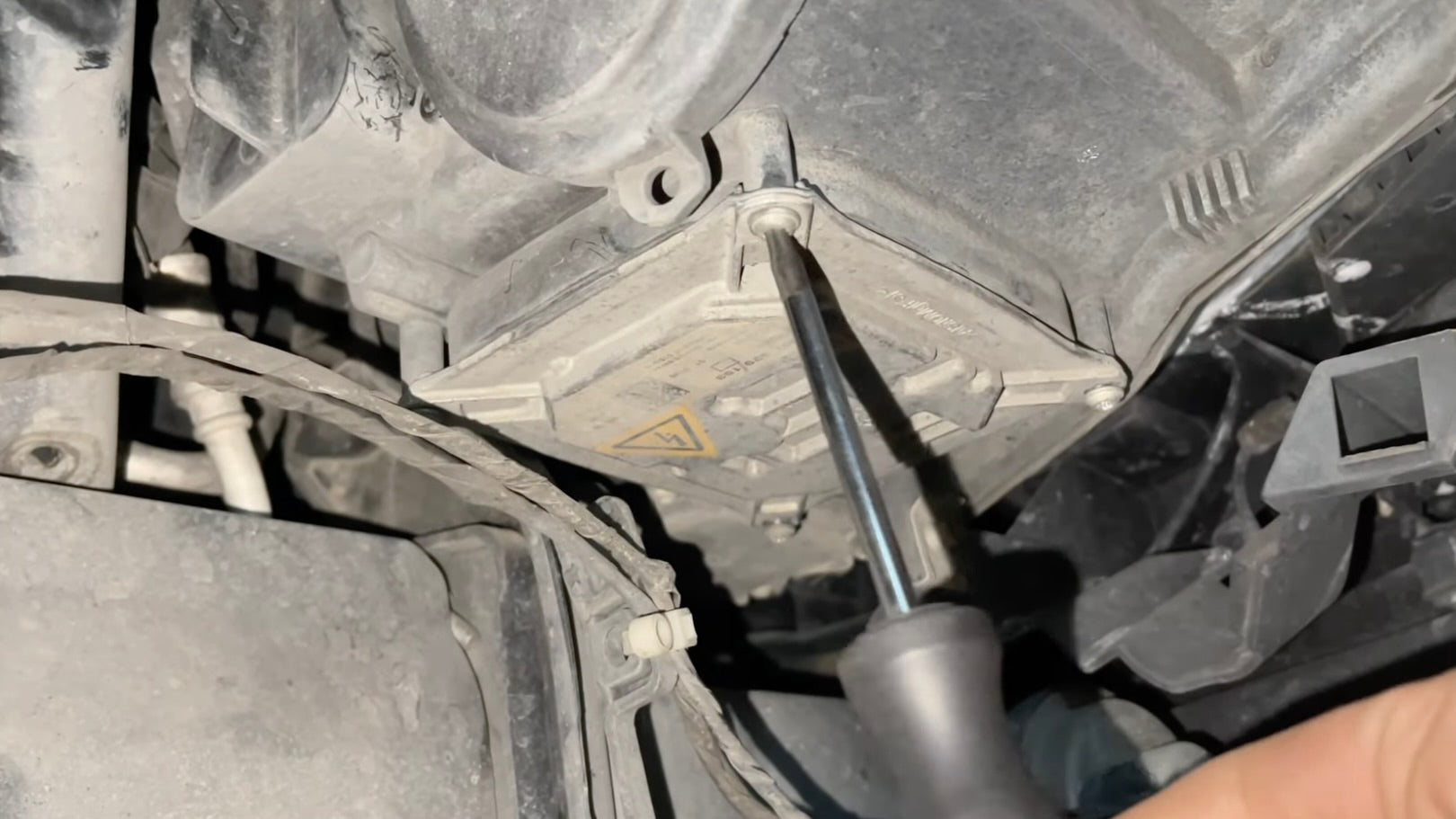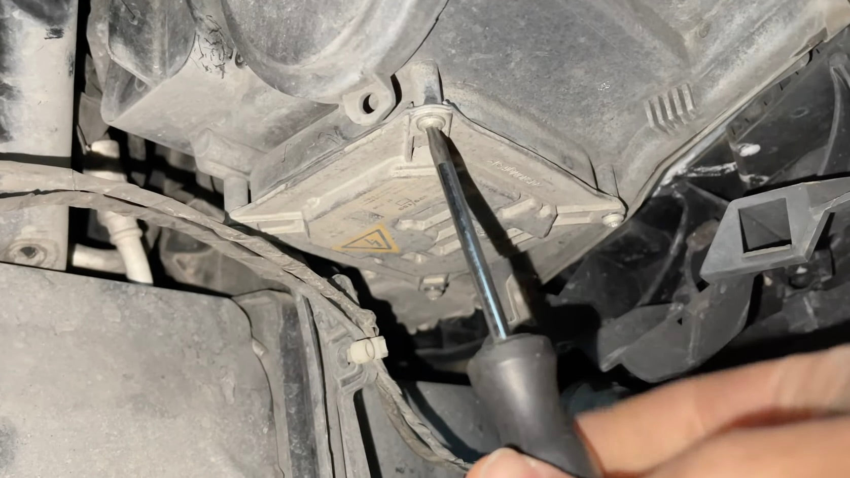 Now that the headlight ballast(s) is confirmed to work, reinstall the four ballast screws that hold it into place.