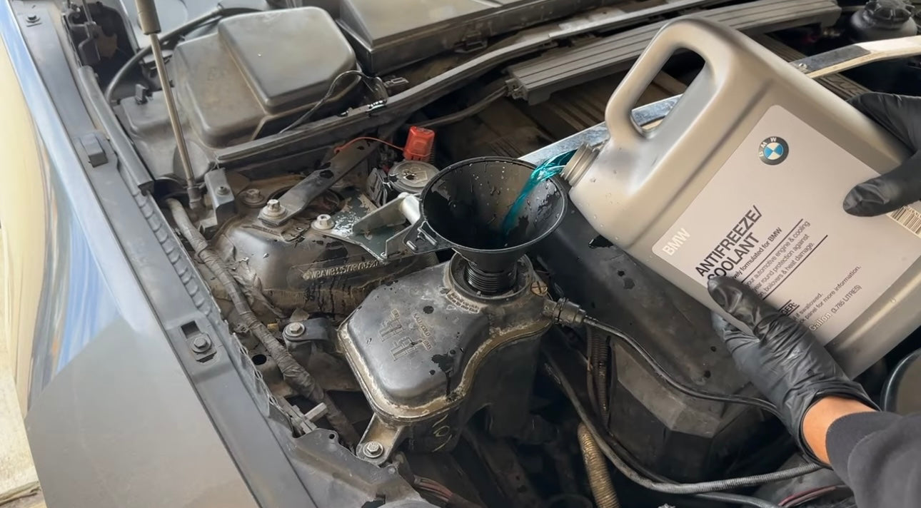 Fill your cooling system with approved BMW coolant until full, then carry out cooling system bleed procedure.