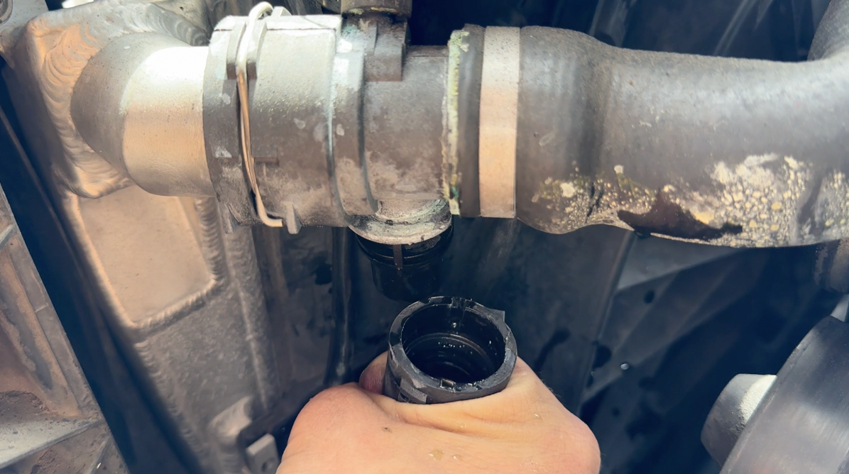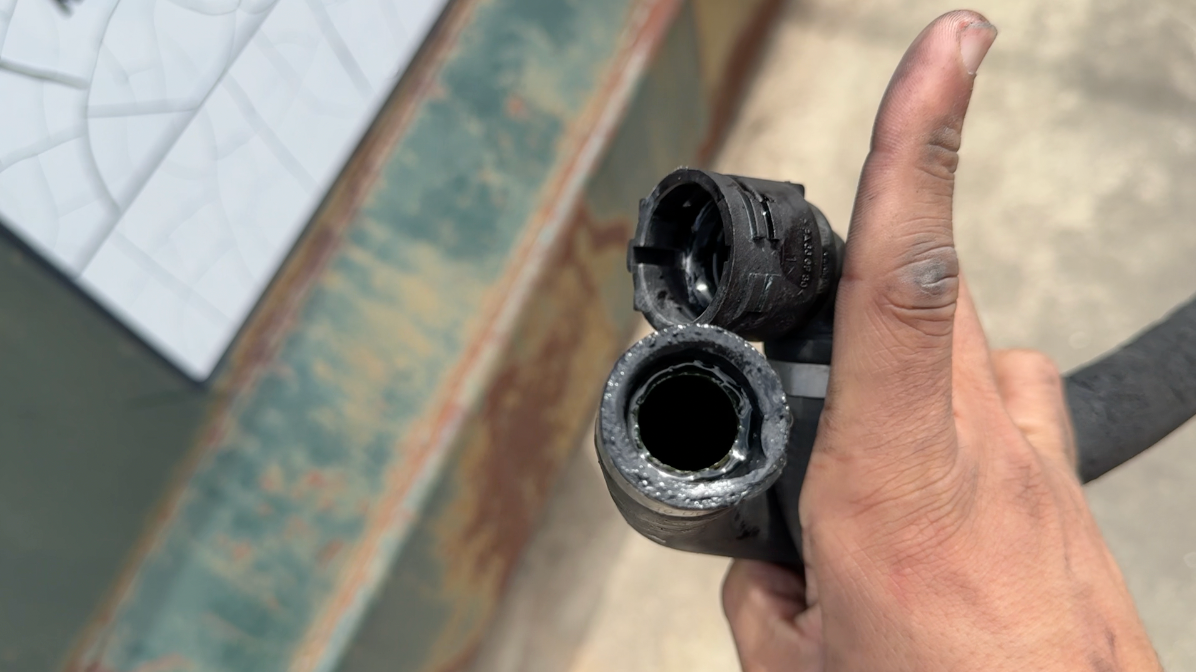 Ensure you are orienting the new coolant hose's connecting point the same way as the picture above. Orienting the hose connecting point the wrong way can cause damage to the heater core and lengthen the install process.