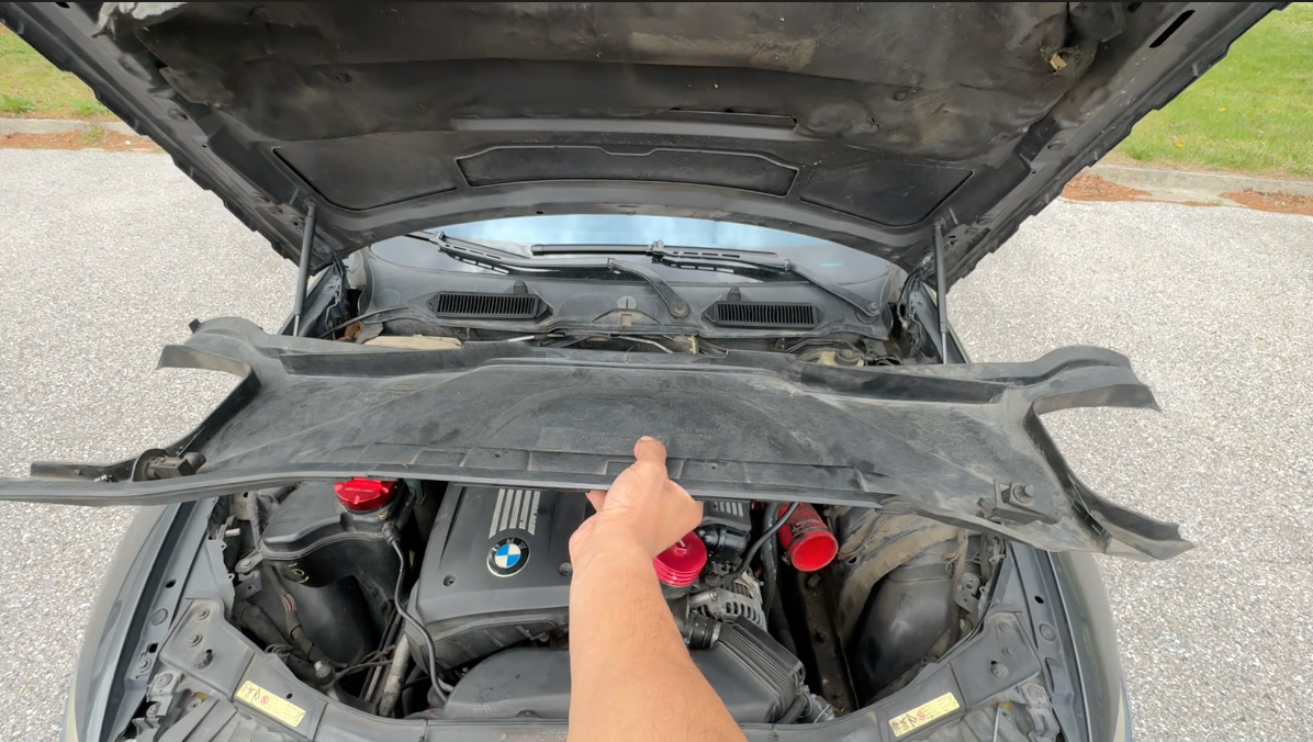 Remove the ECU and brake master cylinder cowl covers by simply lifting up on the retention clip located on either side and simply remove them from the engine bay.