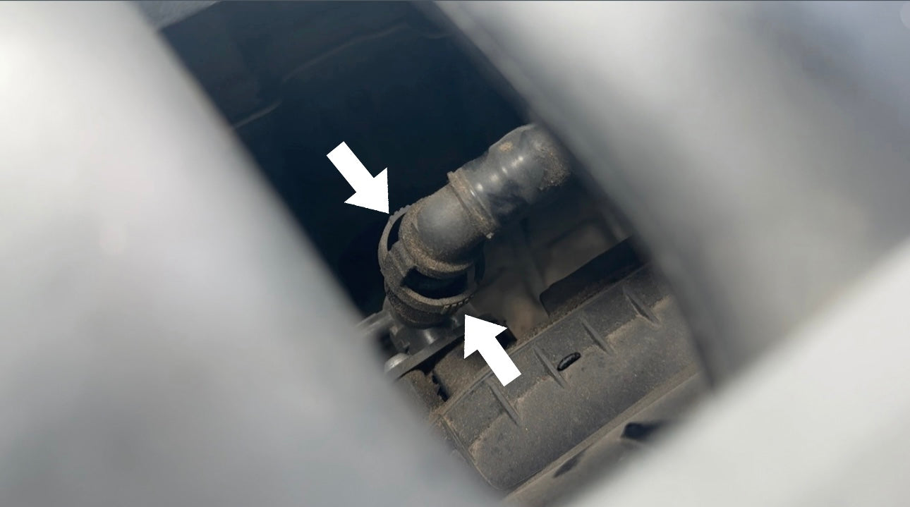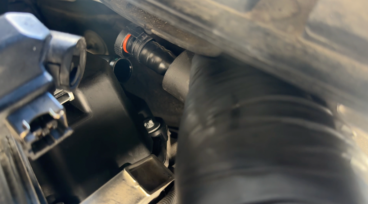 After new crankcase breather hose is firmly installed in place, test start the vehicle and allow to idle for roughly 5 minutes observing no rough idles or check engine lights appear.