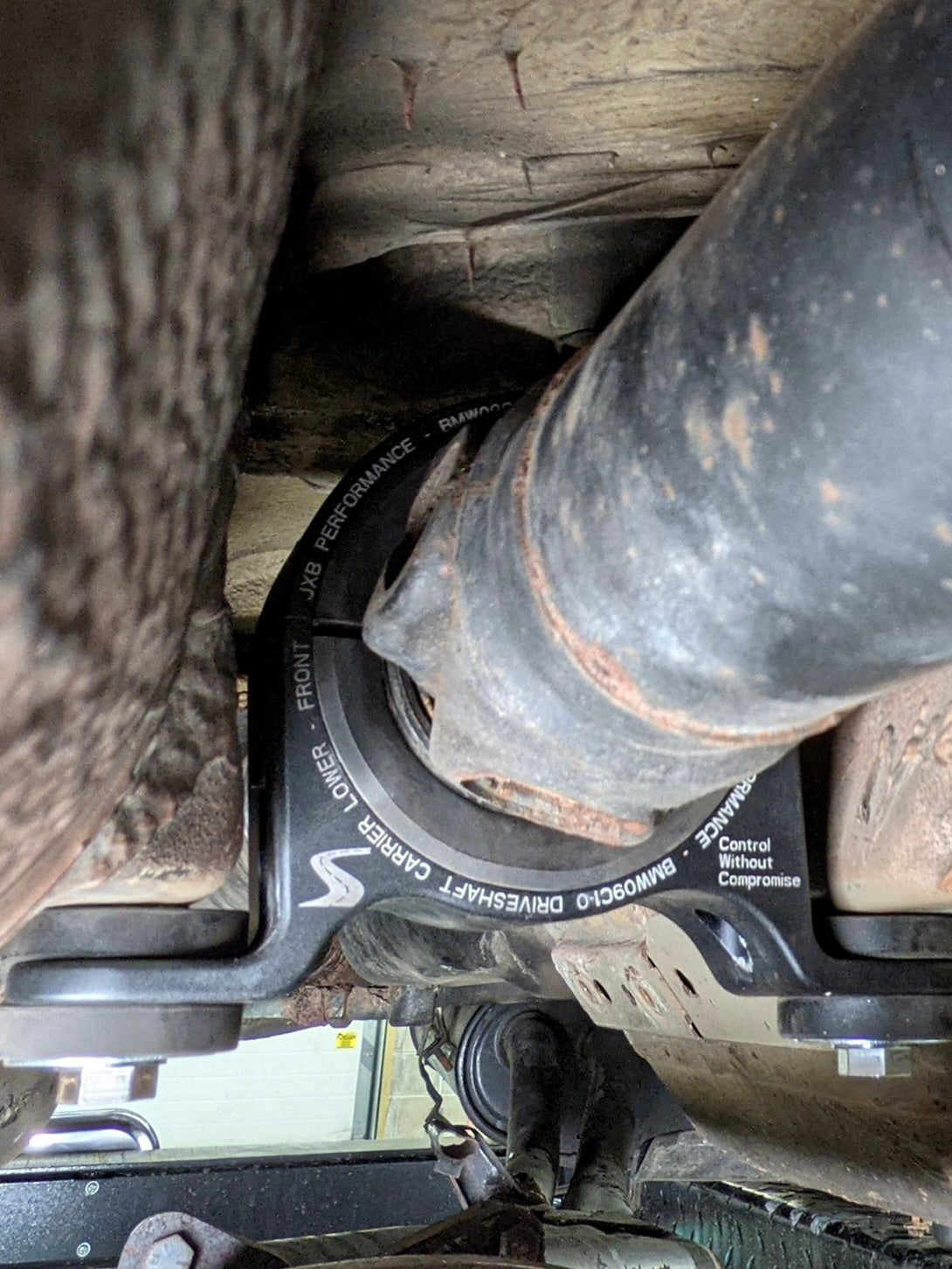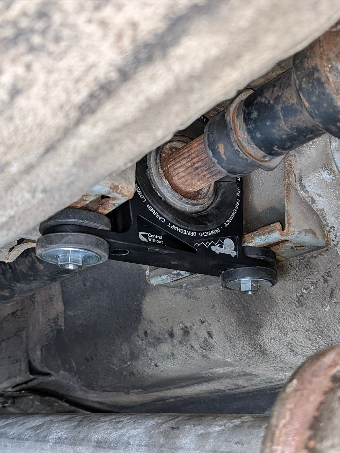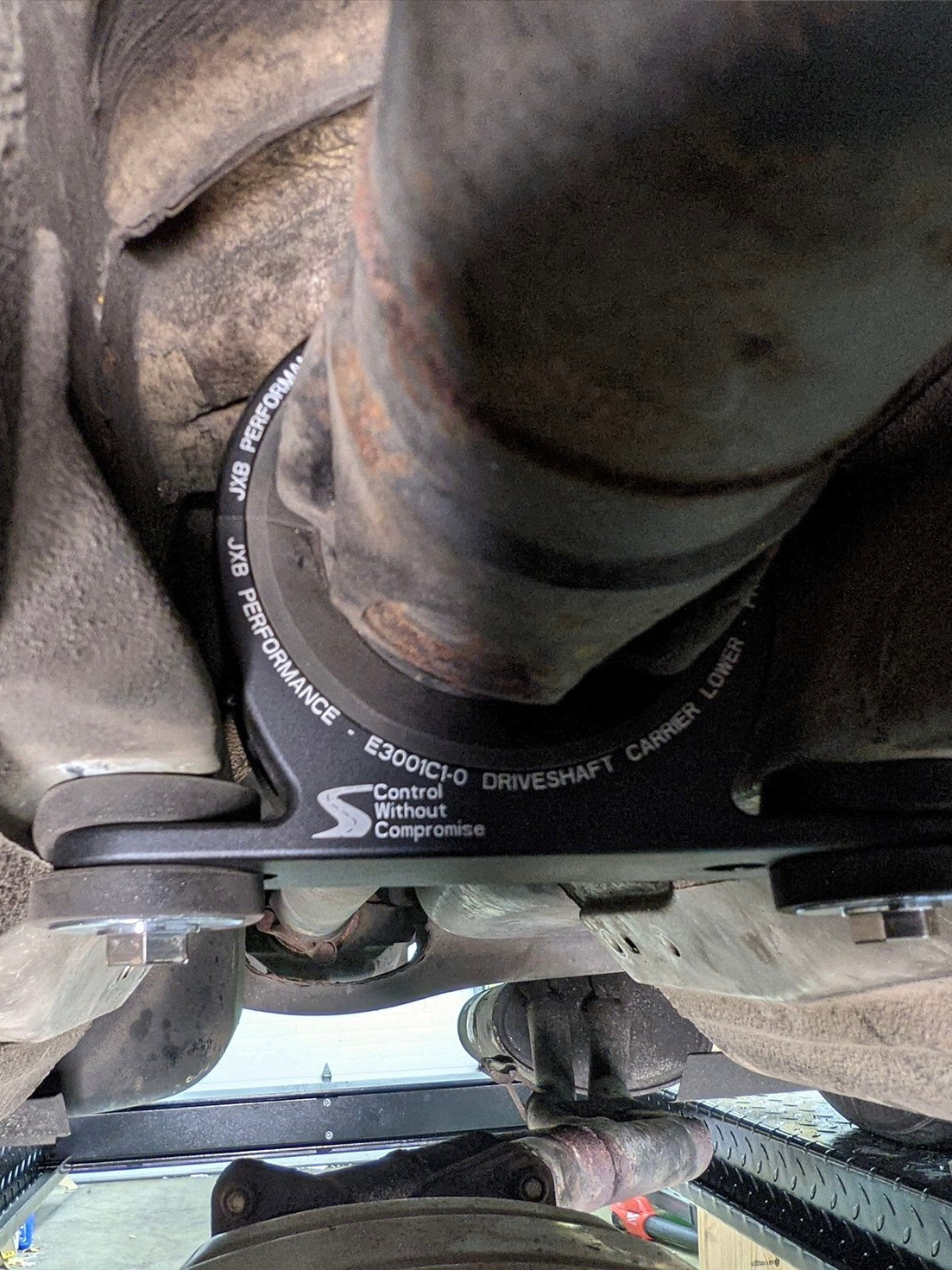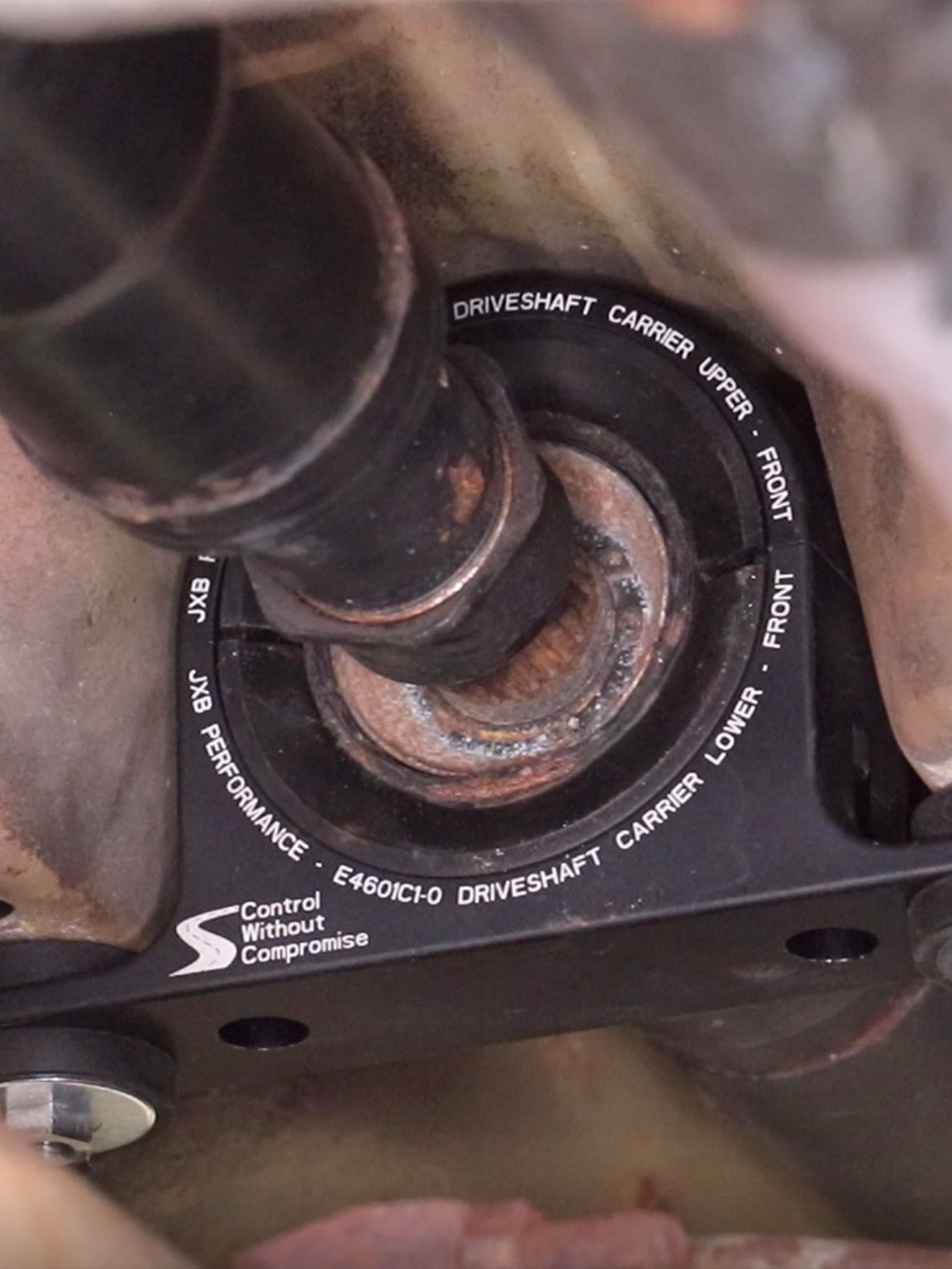 The simple two-piece design eliminates the need for pressing—once the factory carrier bracket is removed, the new bracket lines up in two halves and bolts directly into place.