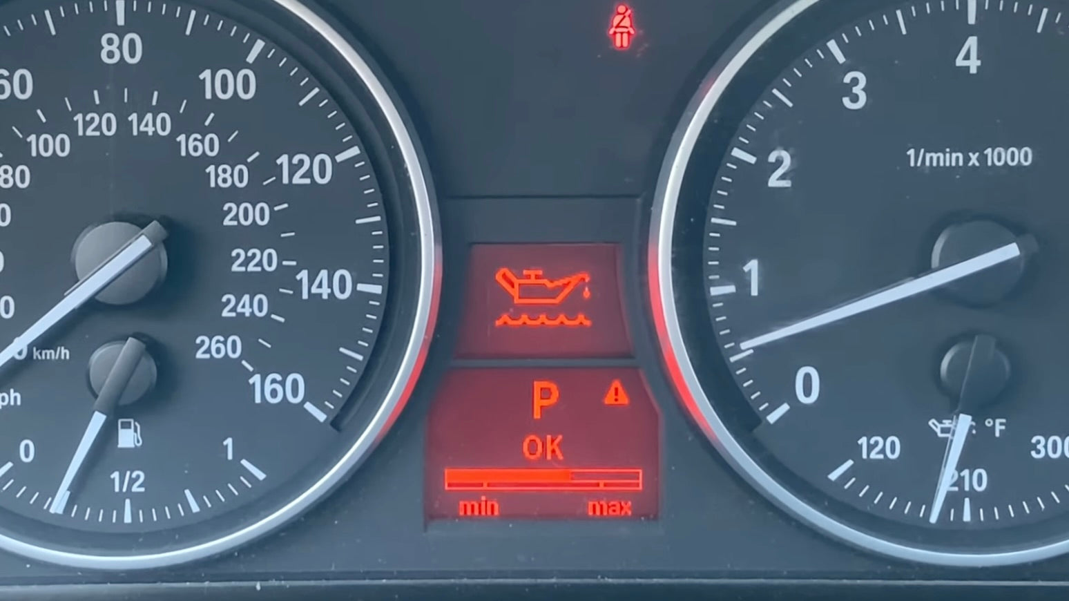 With the vehicle running, use the BC button to navigate to the oil menu. Allow engine to run until oil level is displayed. The meter should preferably be fully centered. If oil level is at the 'min' value, add until sufficiently filled.