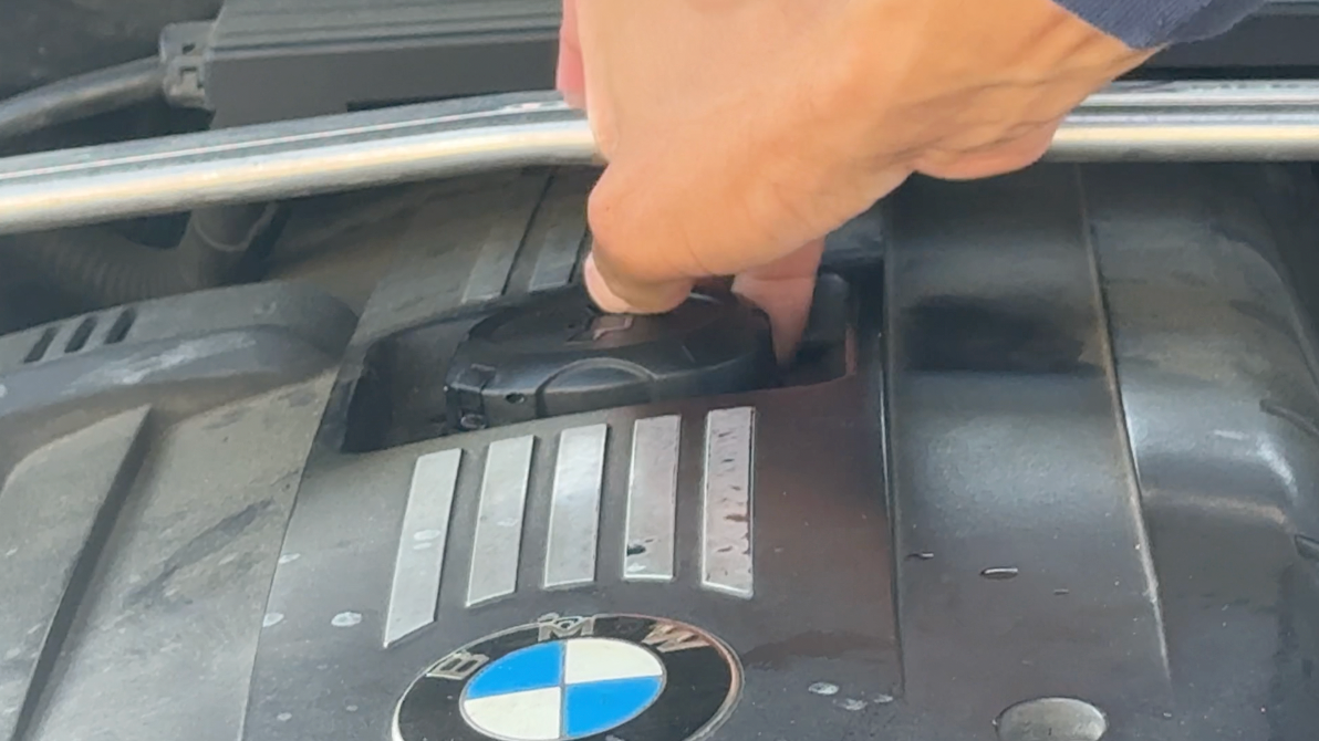 Close the oil filler cap by wiggling it down into place, then turning clockwise until an audible click can be heard.